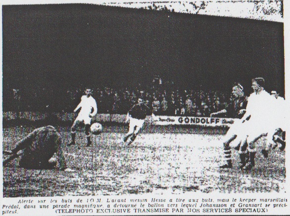 L'Olympique était obligé de gagner du temps afin de conserver son maigre avantage et le troisième but de Rustichelli lui permis de respirer. De Johansson à Rustichelli En définitive, le score de 3 à 2 non seulement est normal, mais démontre que l'Olympique de Marseille, même avec ses moyens limités, peut tenir un rôle intéressant quand il joue avec conviction, application et sérieux. Predal a stoppé deux attaques in extremis au commencement de la partie et dans l'ensemble, il se comporta honorablement, malgré quelques lâchés de balles. Gransart n'était pas dans un jour faste et eut de nombreuses difficultés à contenir l'ailier Steibel. Palluch n'eut pas la partie aisée devant Hess et fut obligé d'opérer avec une certaine fermeté. Marcel réussit quelques percées dangereuses et demeura vigilant en défense. Johansson ratissa quantité de balle et brisa les assauts terribles. Mesas fut satisfaisant. Rustichelli était réellement hier, en grande forme et son but fut un modèle d'opportunité et de vivacité. Constantino, toujours excellent tripoteur de balles travailla avec zèle. Andersson s'avéra réaliste en réalisant le deuxième but marseillais mais il avait devant lui un policeman, en diable qui ne lui laissa pas beaucoup de liberté. Chicha fourni une première mi-temps très remarquable par sa combativité et sa vitesse d'action. Enfin Durand fut plutôt effacé devant un Burda extrêmement solide. Mais il est à noter qu'il ne fut pas très souvent servi. Rigoulot fut moyen sans plus. Burda fourni un labeur inlassable. Fuchs se révéla accrocher et clairvoyant. En attaque seul Steibel fut inquiétant par ses percées tandis que Hess ne s'avouait jamais vaincu. |