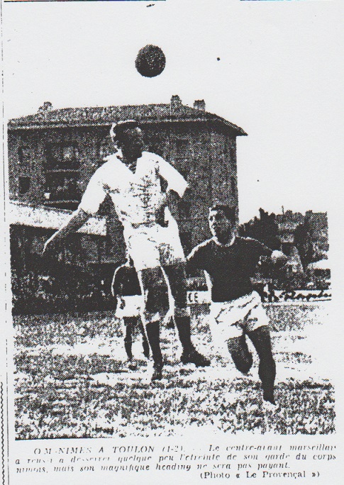 TOULON - Les Olympiens marseillais ont reconnu que le succès des Gardois était normal et nous pensons qu'il ne peut être mis en question bien qu'après l'élimination le onze phocéen donna un coup de rein qui faillit lui valoir l'avantage. Les "Crocodiles" surent mieux s'adapter à l'étroitesse du terrain que les porteurs du maillot blanc, plus volontaires, plus agressifs, plus rapides. Il surent s'assurer la conquête de la balle en maintes occasions et leurs mouvements offensifs furent plus nombreux et mieux combinés que ceux des marseillais. En défense, Dakowski ne commit pas de faute et se montra extrêmement solide ; Fornetti boucla Durand ; Lafont ne fut mis en difficulté que devant Rustichelli. Schwager fournit une partie très satisfaisante au poste de demi gauche, tandis que Golinski dominait Andersson et, opérant dans un style sobre fournissait des balles à ses avants. La ligne offensive nîmoise se montra souvent pleine de verve. Elle possédait un admirable chef d'orchestre en la personne de l'Autrichien Kominek et d'un puncheur redoutable avec Rahis à la pointe de vitesse déconcertante. Akesbi tripota bien la balle, tandis que Abdesselem se montra très efficace. Chez les "blancs", la défense eut souvent des hésitations fâcheuses et des interventions malencontreuses. Molla et Scotti en furent les éléments les plus honorables, les plus sûrs. La ligne d'attaque ne trouva jamais la bonne carburation et les ailiers surtout furent effacés. Seuls Constantino et Mercurio s'efforcèrent d'oeuvrer de manière constructive. |