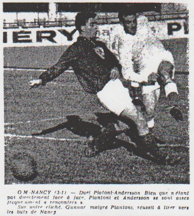 Après ce quart d'heure extraordinaire, les hommes de Camille Cottin baisse de cadence. Scotti, jusque-là assez efface, montre le bout de son nez. Une de ses ouvertures permet à Andersson de placer un bolide à côté de la cage malheureusement. Un exploit de Domingo Nancy ne joue pas battu, au contraire. À la 73me minute, Piantoni shote violemment vers les buts phocéens. Domingo, sans un réflexe remarquable renvoie le cuir. Dorsini reprend cette balle de volé mais Domingo, décidément d'une lucidité extraordinaire se couche sur elle. Cette action du grand Marcel recueille les applaudissements unanimes du public. Andersson marque deux buts coup sur coup. On semble s'acheminer vers un score nul. Nancy, d'ailleurs pour y parvenir, fait jouer Piantoni encore un peu plus en retrait. Mais Scotti qui sent que l'adversaire est prêt à commettre des erreurs joue franchement l'attaque. À la 80me minute, il déplace le jeu sur Andersson. La balle arrive dans les pieds de Gunnar le terrible qui sans la contrôler la loge dans les filets de Nagy. C'est le premier but olympien. En remet en jeu, Leonetti ouvre sur Durand. L'ailier droit trompe Coliot, centre sur Andersson et c'est le second but marseillais. Le public exulte mais Nancy ne s'avoue pas battu. Baden réduit le score. En effet, à la 85me minute, Piantoni bloque une attaque de Marcel, il sert Deladerriere qui centre vers Baden l'inter droit lorrain, de trente mètres tire en coin et la balle termine sa course dans la cage olympienne malgré un plongeon désespéré de Domingo. À Curyl le 3e et dernier but. La riposte de l'O.M. et alors foudroyantes. Andersson donne le cuir à Curyl, Stan file vers la gauche, dribble Tazoppe, s'avance. Nagy, qui a vu le danger sort de ses buts. Peine perdue car le néo-olympien ne se laisse pas prendre à la feinte et botte dans la cage vide. C'est du délire dans le Stade Vélodrome et l'on applaudit à tout rompre le premier but marqué par Curyl. Puis Andersson, vraiment retrouver exécuter un numéro sensationnel dont lui seul a le secret, en mystifiant successivement trois adversaires et en plaçant un bolide que Nagy bloque imparfaitement (86me minutes). Encore une ou deux actions dangereuses de l'O.M. et l'arbitre siffle la fin sur la victoire incontestable de l'O.M., victoire saluée par des vivats nourris et mérités. Maurice GOIRAND |