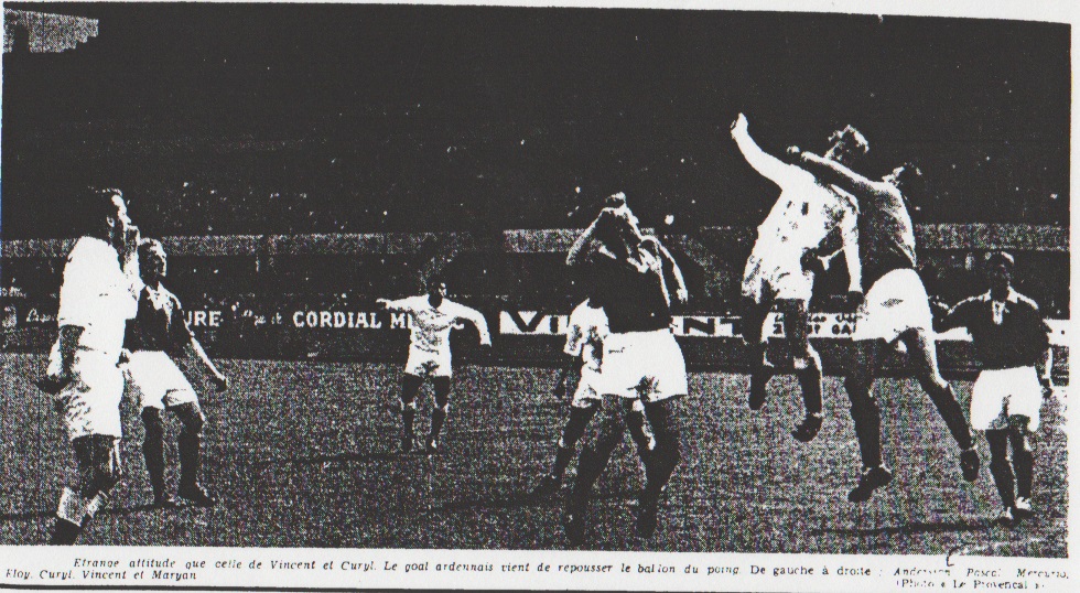 Deux erreurs capitales, on le voit de d'autant que rien ne marchait hier dans cette équipe que l'on disait en très grandes conditions. La balle "psychologique" sur le poteau. Sedan eut assez peu d'occasions de mettre à l'épreuve la défense marseillaise. Mais Marcel Domingo ne sans laissa imposer à aucun moment. À la 43me minute, alors que l'O.M. menait à la marque par 2 buts à zéro, cette défense faillit pourtant s'incliner ; elle était battue lorsque la balle décochée par Carpentier, frappa le poteau droit avant d'être remis est sorti cette fois par Breny. Sans doute à la minute 83', Andersson dit-il un de ces tirs subir le même sort. Toujours est-il que Sedan rata cette belle occasion importante. Peu de choses à retenir de cette confrontation de fin de saison qui nous a permit de remarquer Marcel, Scotti, Domingo, Molla et Jensen à l'O.M. : Lefevre et D. Carpentier à Sedan. Mais répétons-le : Sedan a été trop inférieur à ce que nous attendions pour que nous puissions tirer des enseignements valables de cet après-midi. |