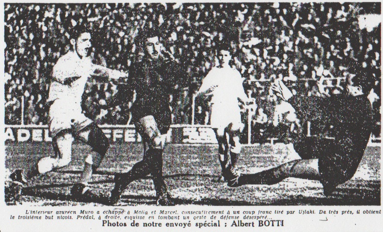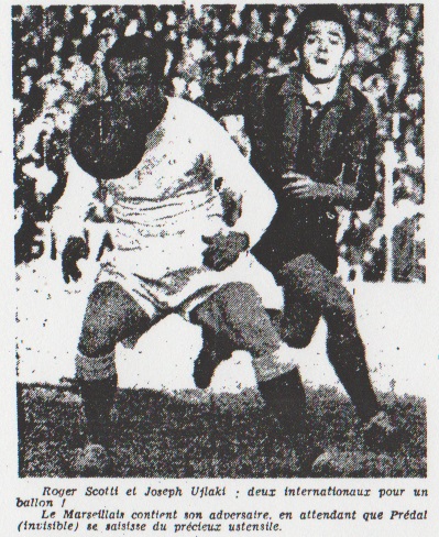 Par contre, Predal hésita sur l'action de barreau qui coûta le second but, sans pour autant pouvoir être tenu pour responsable de la défaite. Gransart se découragea trop vite, voulant même quitter le terrain un certain moment. Marcel plaça quelque raide en première mi-temps, puis eut un rôle défensif sans grand relief, tout comme Scotti. De Rustichelli, blessé, nous ne dirons rien. Amalfi n'entreprit pratiquement rien et Jensen s'enserra constamment dans une portion de gazon trop éloignée de Lamia. À Nice, tout le onze joua bien un match facile, mais Ujlaki et surtout Foix ratèrent des buts qui eussent transformé cet échec marseillais en débâcle. |