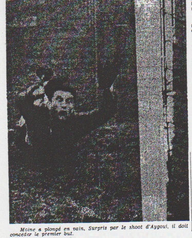 En tout cas sans qu'elle soit arrêtée, et cette façon active de jouer le coup franc ressembla plus à un "tenu" de jeu du 13 ou à une introduction en mêlée qu'un coup franc honnête. Kominek bien seul Tout au cours de la rencontre, Kominek joua un rôle éminent. Il travailla énormément et fournit à son attaque un maximum de balle qu'elle utilisa très mal, de là, l'irritation du public. Moine eut à intervenir très souvent, mais bien plus sur des poussées de l'attaque marseillaise que sur des actions cohérentes, et il s'en tira fort bien. Il ne commit une erreur en ne jugeant pas très bien la trajectoire d'un corner de Lefevre en fin de match, et cette erreur lui fut fatal, puisque Sansonetti marqua de la tête (85me minute). En dehors de Kominek, Knayer fut bon et très sûr. Bordere apparut en fin de rencontre et prouva alors qu'il pouvait être un élément intéressant. Ne jugeons pas la défense, dans son ensemble, car elle eut une tâche facile, et jugeons sévèrement l'attaque, qui ne réussit rien de bon. À Cherbourg, le gardien Moine fut excellent, audacieux, souple et sur. Le petit et sombre Yapi fut le plus actif, indiscutablement, d'une défense bien groupée et courageuse qui ne s'inclina que sur des tirs de balle arrêtée (coup franc et corner). Wozniesko joua très longtemps le rôle de Kominek, mais il sembla découragé en fin de match, tandis que Badia se montrait de loin le meilleur attaquant sur le terrain. Louis DUPIC |