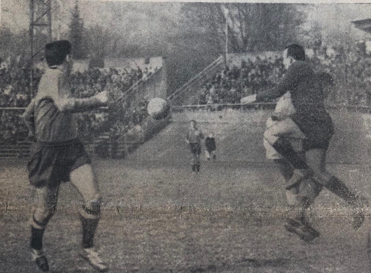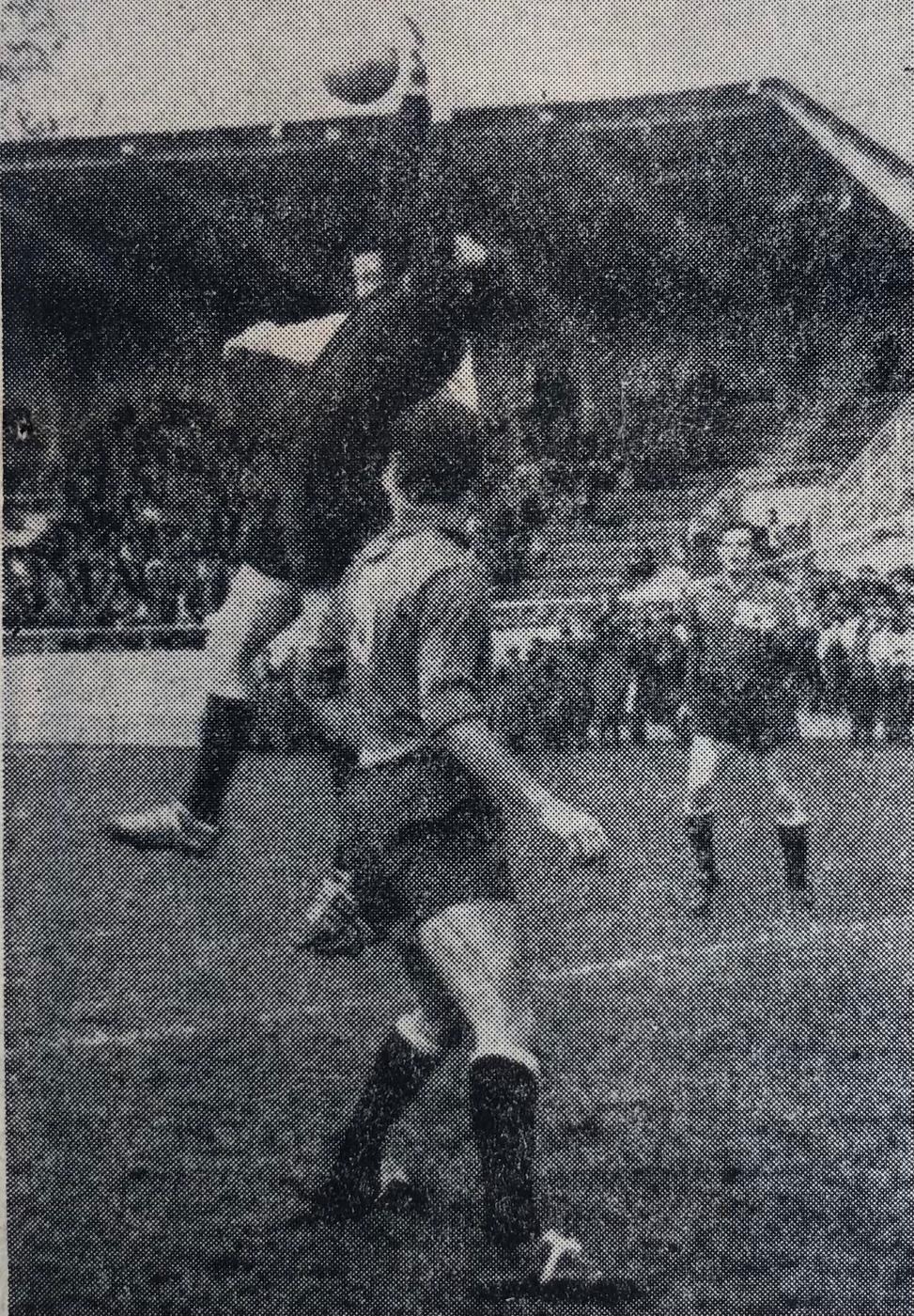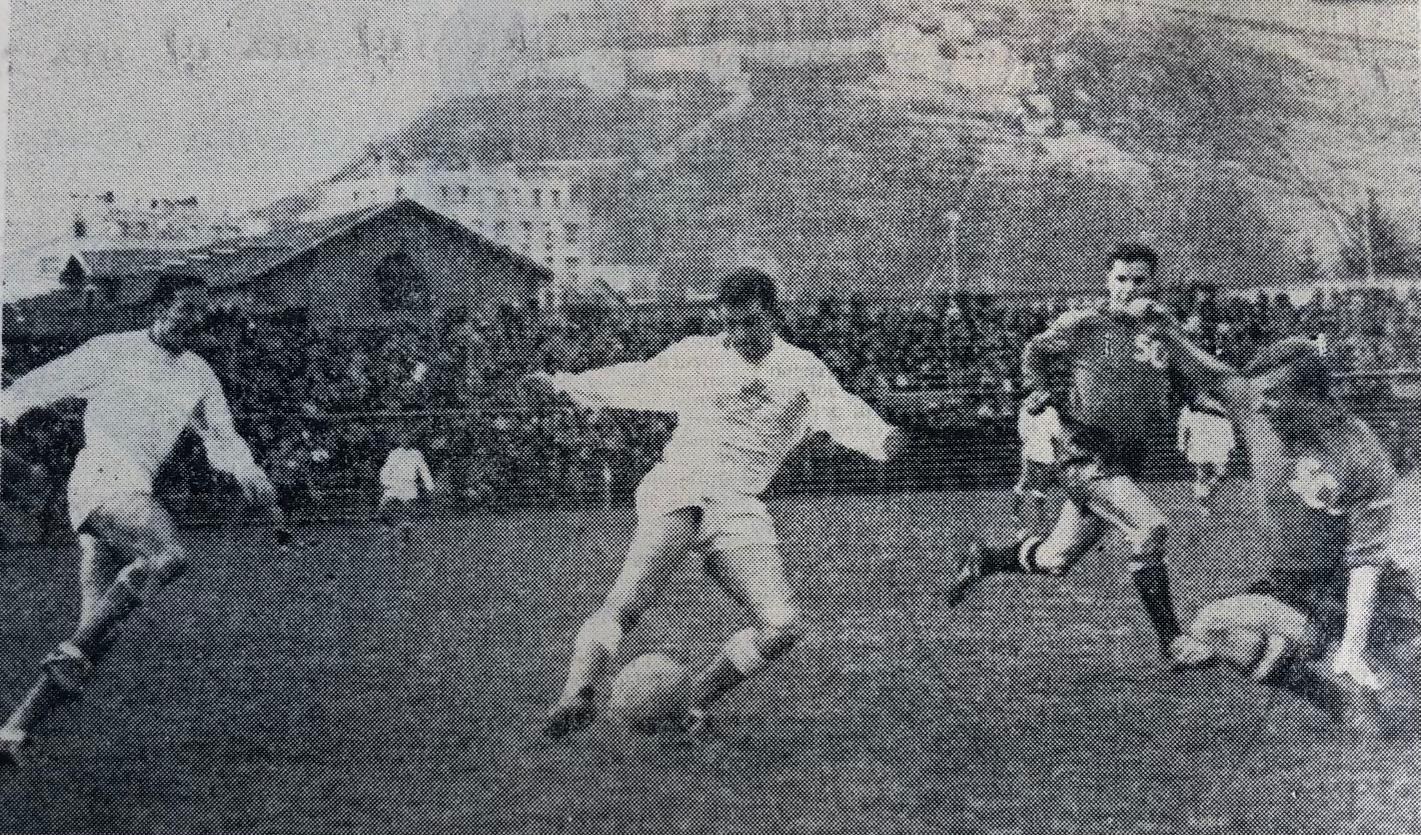 A GRENOBLE, EN 85 MINUTES MINUTES DE JEU DEVANT UN BON MILLIER DE MARSEILLAIS ULCERES ANGERS et M. DHUMERELLE éliminent l'OM Célestin OLIVER, sur penalty, marque le but de la victoire angevine (20') Les Marseillais frustrés en deuxième mi-temps D'un penalty absolument indiscutable (D'un de nos envoyés spéciaux : Maurice FABREGUETTES) |