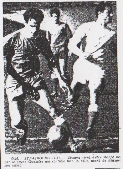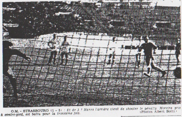 Il faisait beau, sinon chaud, on avait mangé à la hâte sandwich en rêvant à la blanquette de veau ou au beef-frites mis en instance dans la cuisine familiale... et l'on s'était installé sur les gradins du Stade-Vélodrome. Bien que l'heure fut inhabituelle - et à notre avis mal choisit - il y avait tout de même environ 6.000 supporters, triés parmi les plus fidèles du vieux et glorieux club marseillais. Le vent était au nord et à l'optimisme. Contre Strasbourg, assez mal classé, battu quatre jours plus tôt sur son terrain par Lyon (3 à 0) et privé de deux de ses buteurs patentés Koza et Szamboki, O.M. devait concrétiser son redressement, amorcé semble-t-il, à Monaco. Chutes... et glissade Il ne fallut pas un quart d'heure pour se rendre compte que ce redressement se traduisait, surtout, au niveau du sol. Que de chute ! Que de chute ! Moreira glissait, Palpacuer plongeait, Bruneton trébuchait, Roy s'enlisait... et l'O.M. lui, glissait, à l'allure de Perrilat se dévalant la piste verte, vers la deuxième division. Profitant de ces bonnes dispositions, les Strasbourgeois, venus à Marseille avec des ambitions très limitées, ne tardèrent pas à s'enhardir. Muller, le nouveau Bessonnart de l'Est, en beaucoup plus svelte d'ailleurs, se paya dribble sur dribble, feinte sur feinte, jouant avec Moulon, Bruneton et Tellechea comme un Ordonez des ex-grands jours devant des Miural nobles. Déjà k.o. à la mi-temps Comme, pendant ce temps, l'ailier gauche Hausser passait très régulièrement Palpacuer et que Peyroche se "promenait" au centre du terrain, le pire pouvait être redouté. En fait, le K.O. était déjà réalisé à la mi-temps. Un gauche : une échappée de Hausser venant tromper Moreira à bout portant. Une droite : le Benjamin Joanny jouant la fille de l'air à Knayer, avant de centrer sur le pied de son jeune compère Gress, qui ne laissa pas échapper pareille occasion. Deux à zéro à la mi-temps, la suite ne fut plus qu'une longue formalité. Otto Gloria lui-même Qu'avait fait l'O.M., pendant tout ce temps ? Rien, sauf une bonne attaque collective (20e) menée par Aygoui et terminée par un tir de Stopyra que Remetter n'eut aucun mal à arrêter. C'était évidemment un strict minimum. Surtout venant d'une équipe jouant sur son terrain. |