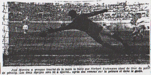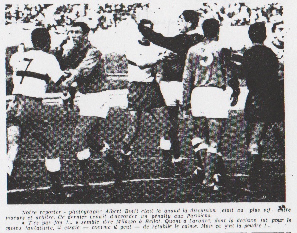 Norbert Eschman, ancien olympien, précisa : "Cette défaite nous met dans une drôle de situation ! Je serais heureux que l'O.M. s'en sorte pour M. Zaraya qui a fait de gros sacrifices. Lerond s'écria : "Ce n'est pas beau ce que Knayer a fait au jeune Loubet. Il y avait un deuxième penalty indiscutable !" Stako surenchérit : "Les Marseillais n'ont pas été réguliers, ils ont abusé des charges anormales, mais Knayer a réellement exagéré ; il y a des choses qu'on ne fait part". Célestin Oliver, ancien Marseillais et Sedanais assistait au match O.M. - Stade hier après-midi. Il vint congratuler les Olympiens et ainsi les Stadistes, en particulier son ancien coéquipier Norbert Eschman. "Ce fut une empoignade sévère ! On sentait que l'enjeu était très important pour les deux équipes. Alain DELCROIX |