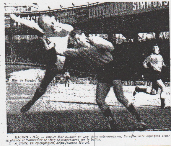 On avait pu croire, durant le premier quart d'heure de la rencontre, que l'O.M. allait connaître un nouveau dimanche gloire. La température était presque printanière, la pelouse du Parc en bon état, et l'attaque olympienne, dont les maillots blancs tranchaient sur les maillots rouges des Parisiens menait offensive sur offensive. Sansonetti dominait aisément Lagadec, Roy bousculait la défense adverse et Dogliani multipliait les passes et dribbles judicieux. Durant cette période faste pour les Marseillais, Taillandier sauva deux fois sa cage, in-extremis devant Roy. Et c'est principalement, en fin de mi-temps que l'attaque olympienne laissa passer sa chance. En deux occasions, Sansonetti pourtant très perçant, manqua de clairvoyance au moment de l'estocade. Bien sûr, un joueur, dans le feu de l'action, ne voit pas le jeu comme on peut le voir des tribunes, mais il n'en reste pas moins que l'O.M. venait de brûler pour rien ses meilleures cartouches. À la mi-temps l'un des plus fidèles supporters de l'O.M. le sympathique restaurateur "Fanfan" nous demanda quel était notre pronostic. Nous ne pûmes lui cacher notre pessimisme. Il est rare qu'une équipe ayant raté autant d'occasions pendant les premières 45 minutes, connaisse une suite et fin heureuse. Surtout devant un adversaire aussi valeureux que le Racing, et mis en confiance par le déroulement du jeu. Dès le début de la deuxième mi-temps, Van Sam marqua un très joli deuxième but, et ce fut la fin. On vit alors le Racing monopolisé la balle devant un O.M. fatigué et démoralisé. Ce fut le moment le plus monotone de la rencontre. Les Marseillais produisaient une fâcheuse impression d'impuissance, tandis que les Parisiens semblaient se complaire à compliquer leur jeu. Ce n'est que vers la fin que Van Sam, échappant à la surveillance de Knayer, réussissait "le coup du chapeau". Sur le chemin des vestiaires, nous entendîmes un spectateur dire : "Marseille ne méritait pas un pareil sort, mais Dieu que ses attaquants ont été maladroits". On sait qu'en football, adresse et maladresse ne sont souvent séparées que par un quart de seconde ou un quart de millimètre. Un grand absent : Moulon Comment peut-on juger l'O.M. sur ce match ? |
