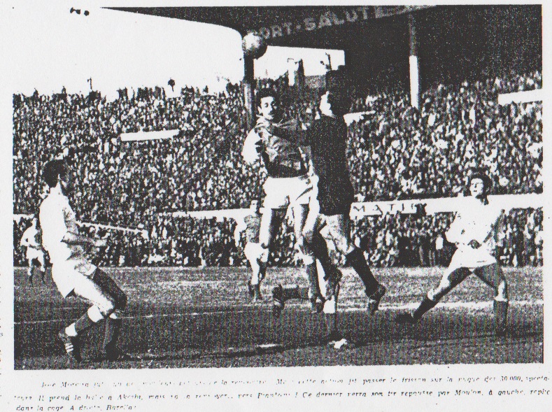 Il restait deux minutes à jouer peut-être trois, et la foule marseillaise sifflait en cadence pour inciter M. Bois, arbitre de la rencontre, à donner le signal de la fin, préservant ainsi la victoire de l'O.M. sur Reims. Une sortie désespérée de Moreira et le ballon littéralement sur le pied gauche de Piantoni, qui le souleva du sol et loba toute la défense marseillaise. Le coeur de la foule cessa de battre ! mais la tête de Moulon repoussa une nouvelle fois le danger. Sur la contre-attaque, Sansonetti jeta ses dernières forces dans la bataille et, à l'autre bout du terrain, contraignit Barreau à une parade spectaculaire, qui évita à Reims humiliation d'un deux à zéro. Multiples occasions ! Et bien, toute la rencontre fut pratiquement à l'image de ces derniers instants que nous venons d'essayer de vous décrire, une succession d'occasions de buts de part et d'autre, l'O.M. marquant dans ce domaine un léger avantage qui légitime sa victoire. Comme nous l'espérions confusément, les Marseillais stimulés par leur qualification en Coupe de France attaquèrent la rencontre tambour battant et dominèrent généralement jusqu'à la pause. Dès la 8e minute, ils ouvraient le score, 3 joueurs ayant participé à la réussite de l'entreprise : Dogliani qui donna à Roy, Roy qui tira une première fois sur Barreau, Sansonetti qui expédia la balle sa la transversale d'un solide coup de tête, et enfin Roy qui, toujours la tête la plaça sous la barre dans le haut du filet. Ce but allait être le seul de la rencontre, et personne ne nous contredira si nous écrivions que ce fut contre la physionomie de la partie... En effet, alors que l'O.M. dominait en première mi-temps, Akesbi (25e) parti seul de très loin pour échouer sur un excellent Moreira. Deux minutes plus tard, L'ex-Nîmois lançait Raymond Kopa qui déboulait sur la gauche, mais ne parvenait pas à se rabattre vers la cage marseillaise. Les efforts de Cannes En seconde mi-temps, alors que Reims dominait nettement une équipe locale se ressentant enfin de ses efforts du jeudi précédent, et qui subissait le handicap blessure de Roy, ce furent les Marseillais qui ratèrent plusieurs occasions de creuser l'écart. À la 63e minute, Roy, le blessé, passa Moreau et donna au centre une balle parfaite que Milazzo et Sansonetti ratèrent inexplicablement. Puis c'était un tir splendide de Dogliani que Barreau avait beaucoup de mal à repousser (73e), enfin, Sansonetti profitait de la domination rémoise pour partir de très loin de trop loin. Car, fatigué, il piétinait sans voir Roy totalement démarqué sur sa droite et en face des buts (83e). Reims de son côté passa très près de la réussite sur un coup franc de Kopa repoussé par Moreira, puis Milazzo ( 68e) et sur un lobe de Rodzik qui passa juste au-dessus de la transversale (73e). |