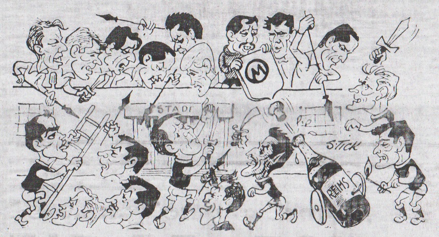 Comment pouvait le prévoir, le match Reims - O.M. a suscité un vif engouement hier après-midi au Stade Vélodrome. Sous un ciel et un soleil printanier, le stade vélodrome avait repris un visage que nous ne lui connaissions plus. Il était noir de monde. Et quand M. Bois appela les deux équipes sur la pelouse, il n'y avait pas de grands creux dans les gradins. Trente mille spectateurs environ pour applaudir les équipes annoncées cette à dire dans les rangs marseillais : Moreira ; Barellas, H. Leonetti, R Tellechea ; Moulon, Bruneton ; Sansonetti, Milazzo, Roy, Rial, Dogliani ; et dans le team champenois : Barreau, ; Wending, Rodzik, Moreau ; Kaelbel, Vincent ; Kopa, Siatka, Akesbi, Piantoni, Sauvage. Pendant les premières minutes de jeu, les deux équipes s'observèrent, puis à la huitième minute, Sauvage déborda avec beaucoup d'esprit de décision, mais shoota en dehors de la cage. Roy d'une tête royale Mais l'attaque olympienne s'organisa et Roy à la 10me minute, tira avec à-propos sur Barreau qui, à terre, repoussa sans grande force, la balle échut à Sansonetti qui fit un heading sur la barre transversale. Le but "chauffait" et Roy bien placé de la tête reprit le cuir expédia la cage rémoise. O.M. : 1 - REIMS : 0. Dans le stade, ce fut une véritable explosion de joie. Les Marseillais se sentaient plus légers et les Rémois plus complexés. Ce sentiment allait s'affirmer au fil des minutes. Après une tête de Dogliani (onzième minute) et un tir imprécis de Sansonetti, Akesbi donna un vif frisson aux supporters phocéens. Il démarra avec infiniment d'esprit de décision, surprit les défenseurs au maillot blanc, tira dans sa foulée, Moreira repoussa la sphère trop faiblement, mais Moulon vigilant réussit à sortir la balle de la surface des 18 mètres. Une combinaison entre Akesbi et Kopa n'aboutit à aucun résultat. À ce moment-là les portes furent ouvertes à plusieurs milliers de retardataires purent prendre place autour de la pelouse. Akesbi expédia dans sa foulée un tir au-dessus des bois. Milazzo fit une percée (42e) et à la 44e, Moulon concéda le premier corner, de la rencontre devant Sauvage. Des Marseillais allaient-ils conserver leur avantage au cours de la deuxième reprise ? Les Rémois allaient-il faire le forcing pour combler leur retard. À la 49e minute, Dogliani réalisa un magnifique centre qui obligea Rodzik à dégager en corner, puis Roy donna un heading en dehors de l'encadrement et puis Roy fonça, centra, Barreau manqua la réception. Sansonetti rata une belle occasion d'aggraver le score. |