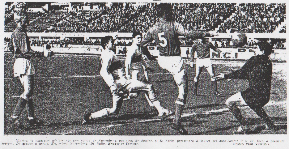 Les dernières défaites de l'O.M. ayant refroidi considérablement l'enthousiasme de ses supporters, il n'y avait pas beaucoup de monde hier au Stade Vélodrome pour voir Lyon, qu'on avait déjà vu il y a 8 jours et que l'on reverra contre Toulon dans deux semaines. Les premières escarmouches, sur une pelouse bonne en apparence, mais très glissante, verront Dogliani, Linder et Aygoui (sur coup franc), alerter successivement Aubour et Moreira. Occasions lyonnaises A la 16e minute Combin lobe Knayer au milieu du terrain et s'en va seul, mais arrivé devant Moreira, il place la balle à côté. À la 30e minute, Di Nallo, seul au point de penalty, est surpris par une passe trop tendue de Nowak, et il manque le contrôle de la balle. Puis l'O.M., par Aygoui et Tellechea inquiète - modérément - Aubour. À la 43e minute, sur une ouverture remarquable de Nuremberg, Di Nallo s'en va, passe en vitesse Knayer qui le "balance" nettement sans réaction de l'arbitre. La fin de la première période verra Dogliani contraindre Aubour à dévier en corner, puis Combin force Bruneton a un sauvetage in extremis. DI NALLO ouvre la marque La deuxième mi-temps commença mal pour l'O.M. Tout d'abord Hatchi, bien lancé par Combin, rata un but facile pour ne pas risquer de blesser Moreira. Puis, à la 50e minute, Combin, de la ligne médiane, expédia pour Di Nallo une longue balle aérienne qui surprit d'autant plus la défense marseillaise que celle-ci crut au hors-jeu. Hélas pour elle, Di Nallo dribbla Moreira et plaça calmement la balle dans la cage... (1 - 0). Cinq minutes plus tard, sur départ et centre de Hatchi, Combin ratait à bout portant un but qui paraissait immanquable. Aygoui donner un coup franc au ras de la transversale (65e) créant une légère diversion. Mais les Lyonnais étaient maîtres du jeu et s'amusaient comme de petits-fous. COMBIN confirme Coup sur coup Moreira, excellent, devait intervenir devant Di Nallo (69e) et Combin (70e). Di Nallo ayant marqué le premier l'autre fer de lance Lyonnais ne voulut pas rester en retard. À la 74e minute, Hatchi passait Leonetti et centrait en retrait. Djorkaeff donnait à Combin mieux placer qui fusillait littéralement Moreira d'un tir de plein fouet du gauche sous la transversale. Imprudents Lyonnais La cause semble entendue. Mais... À la 78e minute Di Nallo trop décontracté arrivait seul devant Moreira, mais se laissait rejoindre et bousculer par Bruneton et, sur une faute de Linder, et coup franc donné à la limite par Aygoui, Roy reprenait de la tête à bout portant, ramenant la marque à 2-1... Les Lyonnais, comme le lièvre de la fable, allaient-ils se laisser rejoindre ? Il accélérèrent l'allure. Au cours des cinq dernières minutes, Di Nallo effectuait un véritable slalom au milieu des Marseillais avant (trop décontracté) de tirer à côté. Nuremberg marquait un but refusé on ne sait trop pourquoi, tandis que Djorkaeff contraignait Moreira à une parade spectaculaire. L'O.M. s'en tirait ainsi plutôt bien, le score de 2 à 1 ne reflétant pas du tout une écrasante supériorité lyonnaise. L.D. |