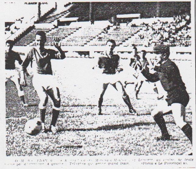De ce match de fin de saison on n'attendait pas grand-chose et de ce fait, les quelques centaines de spectateurs présents ne furent pas déçus... tout étant très relatif. L'O.M. joua comme on a eu l'habitude de le voir jouer, courageusement mais sans manifester des qualités manoeuvrières suffisantes pour inquiéter la solide défense sedanaise. Les visiteurs donc, furent généralement maîtres du jeu du ballon, sous l'impulsion de leurs meilleurs joueurs : Michelin, Maryan, Roubaud. Mais leurs avants de pointe, le jeune Yvan Roy excepté, ne purent prendre le meilleur sur leurs adversaires directs. Comme ils le firent, il leur manqua la réussite et aucun des deux gardiens de but ne s'inclina la moindre petite fois. Dès le début de la rencontre, Étienne Sansonetti, en bonne position, tira nettement en dessus de la transversale (8e). Ce devait être là, la meilleure occasion de l'O.M. À la 13e minute, le jeune Yvan Roy déborda Barellas et était contré in extremis par Moulon. À la 17e minute, même scénario Roy croisait un peu trop son tir. À la 24e, sur percée de Michelin, Salem, seul devant la cage, raté un but immanquable. Une minute plus tard, sur coup franc de Michelin, le même Salem, de la tête, battait Moreira, mais Bruneton sauvé d'un "retourné". Enfin à la 40e minute, une belle action Roy - Lemerre permettait à l'avant-centre de tirer de bien peu à côté. En seconde mi-temps, le jeu sera encore beaucoup plus "relâché" et le meilleur moment sera celui qui verra José Moreira dégager d'une tête superbe à 20 mètres de sa cage. Tout ce que l'on pourra noter, c'est une échappée de Roy, contrée par Tordo (73e) et un beau tir croisé de Lemerre, bien dévié par Moreira (80e). Pas grand-chose à dire d'un tel match. Tous les Sedanais jouèrent facile en dehors des avants de pointe, dont le meilleur fut le jeune et rapide Yvan Roy qui fit passer à Barellas un sombre après-midi. Michelin, Maryan, Jacob, Roubaud, justifièrent leur réputation. Côté marseillais, le meilleur fut sans doute Moulon (malgré ses gestes de mauvaise humeur) qui prit l'avantage sur les grands Sedanais Lemerre et Salem. Avec lui, Leonetti, qui domina Stamm et aussi Moreira et Bruneton. Cette ultime rencontre fit perdre à Sedan la seconde place et confirma l'O.M. dans son rôle de lanterne rouge. |