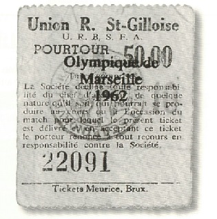 À 53e minute, un coup est sifflé pour Marseille. La situation est très dangereuse. Moreira, parfait, à arrêté la balle, mais la lâche et à ce moment-là, le diable noir Kila Kualunda surgit et c'est un nouveau but : 4 à 1. Dans les tribunes, cette fois, l'enthousiasme déborde et les joueurs belges, déchaînés, repartent à l'assaut. Mais l'Olympique de Marseille fait la preuve ici de sa technique et de son punch et la partie change aspect. Les Marseillais portent le conflit dans les buts adverses. Malheureusement ils ne sont pas servis par la chance. À la 55e minute, Roy tout seul, manque de peu un but tout fait et la domination territoriale qui suit, ne permet pas de conclure. À la 67e minute, Aygoui desservi encore par la chance, shoote mais le ballon touche la barre supérieure. Deux minutes plus tard, enfin, les efforts marseillais sont récompensés lorsque Roy parvint à marquer. Le score est alors de 4 à 2. Nous verrons encore de très belles actions, en particulier une tête superbe de Roy, servi par Claene, que Van Der Stappen dégage de justesse, puis un très beau tir de Miezzazzo, mais tout cela vient trop tard. C'est au début de la partie qu'il aurait fallu démarrer et bien que le jeu, jusqu'au coup de sifflet final, ne cesse de s'accélérer, à aucun moment la partie ne manque d'intérêt, le score est sans réplique et il ne changera pas. Olympique de Marseille, battu par l'Union Royale St-Gilloise, par 4 buts à 2, et ainsi éliminé de la Coupe Européenne des Foires. |