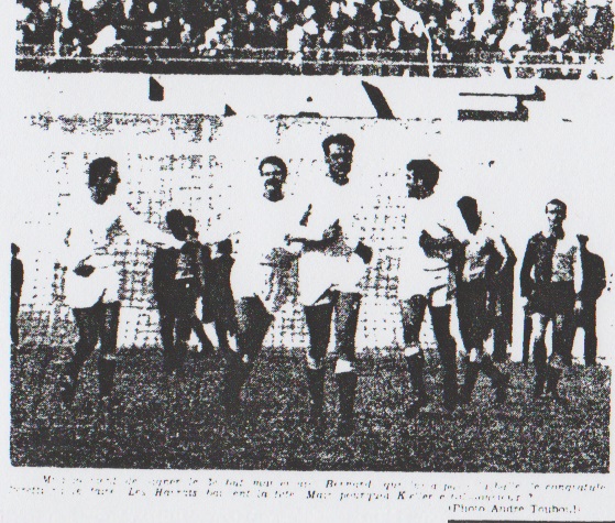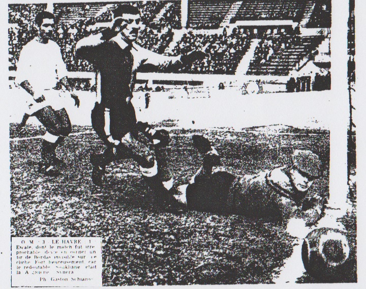 Lefevre : "Nous perdons toujours des matches importants !" Chez les Havrais, les visages étaient sombres. L'entraîneur Devroedt se montrait très objectif pour nous dire : "Ce fut un bon match. L'Olympique de Marseille méritait la victoire ! Il a bien joué". Mohamed Soukhane constatait : "Les Marseillais ont eu davantage occasions que nous !" Lamia maugréait : "Le ballon revenait trop souvent dans nos dix-huit mètres. Comment voulez-vous en sortir ?" Philippe soulignait : "En première mi-temps nous avions fait jeu égal, ensuite nous avons baissé nettement". Abderrahmane Soukhane constatait : "Avec un peu de chance j'aurais pu réussir un second but !" Le capitaine Lefevre résumait son opinion en ces termes : "Les deux équipes se valent ! Hélas nous perdons toujours des matches importants ! Alain DELCROIX |