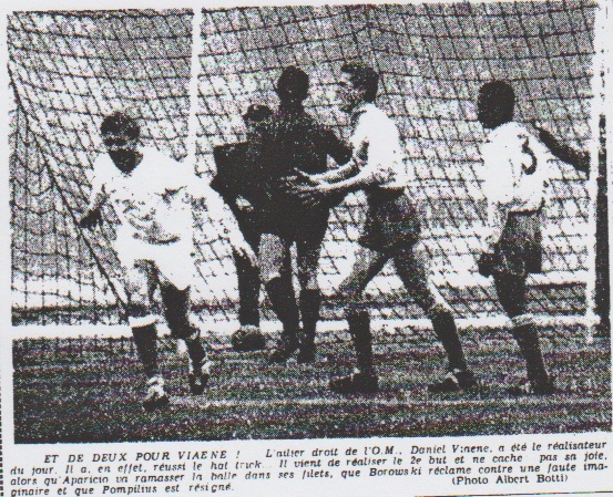 VIAENE : "Mon premier hat-trick !" Visages rassérénés dans le camp olympien. L'entraîneur Jean Robin demeurait flegmatique... "Tout va bien, nous avons remporté un match difficile !" Viaene été radieux : "C'est la première fois que je marque trois buts en championnat, vous pensez si cela ne fait plaisir !" Moulon constatait très simplement : "Ce fut une rencontre fatigante, mais nous avons été récompensés". Milazzo remarquait : "La victoire est bien dessinée en seconde mi-temps. On peut dire que les Toulonnais n'ont pas joué pour nous laisser gagner !" Henri Leonetti s'exclamait : "On aurait dit la Coupe de France". Bernard nous fit remarquer : "J'ai mal aux adducteurs, mais quelle empoignade !" |