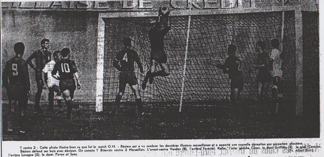 VEDETTE SURPRISE HIER AU STADE VELODROME GRIFFITHS, le footballeur qui coûta le plus cher à l'O.M. Organisateur de la défense biterroise il fut à la base De l'échec (1-1) des Olympiens |