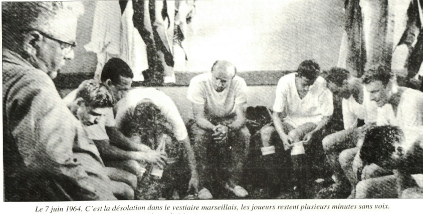 Une fois fait le tri de tout ce qui ne résiste pas à un examen sérieux : les "Ils ne veulent pas monter", "Les Biterrois étaient payés par Toulon et Metz à la fois"... ou encore les "Arbitre nous a volé", que reste-t-il ? La tristesse et simple vérité : l'O.M. malgré son évident désir de gagner, n'a pu marquer plus d'un but, un tout petit but, à une équipe biterroise plus près du C.F.A. que de la Division d'honneur et dont les joueurs amateurs dans la proportion de 8 sur 11, ont fait tout bonnement leur devoir. Tout ce qu'on pourrait écrire d'autre serait de la mauvaise littérature. Il n'y eut aucun scandale dimanche au stade vélodrome, rien qui méritât que fût mis le feu au stade, à mort l'arbitre ou que fussent attendus au coin du boulevard Michelet les honnêtes artisans venus de Béziers, en deuxième classe. Il n'y eut rien d'autre qu'une équipe pâle comme son maillot blanc, énervée, crispée comme il n'est pas permis de l'être et, par suite, aussi aveugle que ses entreprises que maladroite dans leur conclusion. On nous a dit : il faut être sévère, sévir à nos lecteurs une tranche saignante d'O.M. coupée en petits morceaux. Pour qui et pourquoi ? Que l'O.M. est affreusement mal joué, comme il le fait supérieur depuis plus d'un mois - 4 points e 6 matches, dont 3 à domicile, alors que Toulon en gagnait 12 - on ne le sait que trop bien. Les défauts de cette équipe sont tellement criants que nul ne peut plus les ignorer. Surtout pas son entraîneur Jean Robin. Mauvaise et trop lente circulation de la balle au centre du terrain, compliquée par maladresse devenue chronique les avants de pointe. Hier, on avait essayé une nouvelle formule : Milazzo avec le N.9 et Dogliani au centre, à côté de Bernard. Le résultat a été médiocre. Dogliani et Bernard ne se complètent pas, Milazzo n'a plus ces accélérations brutales, capable de surprendre une défense rgoupée. On s'en serait vraisemblablement moins aperçu si Keller et Viaene n'avaient pas paru disputer un concours de loupés, de passes ou de centres à contre-courant et de percées aveugles. Quant à Pavon, le Messie, il démontra ce que l'on savait depuis longtemps : sa meilleure place n'est pas à l'aile gauche. Encore eut-il le mérite de tirer deux fois dans l'encadrement : une sur le poteau, l'autre dans les mains de Carayon, mais avec assez de force pour obliger le gardien biterrois à dévier en corner. La lecture de notre carnet de notes est la condamnation de cette attaque, les occasions de buts n'étaient pas - et de loin ! suffisantes, compte tenu de la domination constante de l'O.M. et de la qualité moyenne, sans plus de l'opposition. Car Carayon, le très jeune gardien biterrois, n'eut pas à se surpasser. À son actif, seuls deux arrêts pouvant être qualifiés de délicats sur deux coups francs tirés directement par Viaene. |
