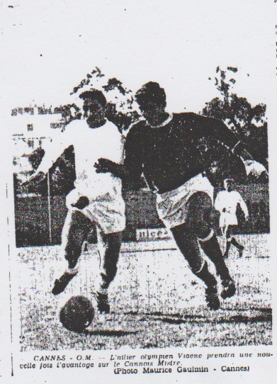 Viaene se signalait par sa vitesse de course et ses tirs puissants. Il se fit remarquer plus encore en expédiant sur coup franc un boulet que Simeoni ne put stopper et qu'il accompagna derrière sa ligne blanche. 3 à 2. L'espoir renaissait dans le camp marseillais. Pas pour longtemps : Yansanne se chargeait de remettre les choses au point en trompant une nouvelle fois Escale sur un centre du bouillant Moresco (39me minute). Ce fut tout pour cette mi-temps ou presque, si l'on considère que Tassone avait dégagé sur sa ligne une balle vicieuse de Yansanne qui allait qui avait, au préalable, dribblé Markiewicz et Escale. Six buts supplémentaires Au retour des deux équipes sur le terrain, on notait une modification chez les Cannois. Mori était resté aux vestiaires, Armand devenait arrière central et Lisnard demi gauche. Pavon trouvait sa récompense de son labeur en trompant Simeoni a bout portant sur un centre de Keller alerté par Viaene. Moresco répliquait par un violent tir sur coup franc qui venait heurter un des montants verticaux avant de ricocher dans les filets marseillais. Cela faisait du 5 à 3. Les Cannois n'allaient pas en rester là, leur tâ6che trouva faciliter par le renoncement de défenseur. "Ca rentrait comme dans du beurre" ainsi que le disait avec un petit rire entendu un supporter cannois. Un "une-deux" Piat - Moresco et Escale s'inclinait une sixième fois. Continuant à gravit son chemin de croix, le gardien marseillais encaissait un ultime affront infligé une nouvelle fois par Moresco. Moyano en profitait pour montrer l'oreille et faire semblant de numéro sous l'oeil blase d'Alberto Muro. M. Hélies non moins blasé, profitait d'un maximum d'inattention générale pour renvoyer tout le monde aux vestiaires. Armand, Yansanne, Moresco et Piat ont donné le ton dans une équipe cannoise qui verra heureusement plus de jeu en défense en appliquant un 4-2-4 assez strict. Chez les Marseillais : Miretto, Bordere, Viane et un degré moindre Keller se mirent au diapason. |