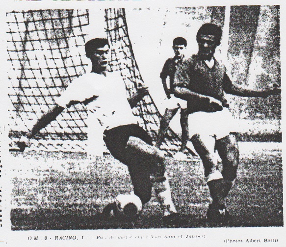 Certains dirigeants de l'O.M. ayant prétendu que les journalistes devaient se borner à donner à donner à leurs lecteurs des comptes-rendus de match à l'exclusion de tout commentaire, nous avons décidé étant dans notre semaine de bonté, de leur donner satisfaction. Mais il est des énumérations qui se passent aisément de commentaires. Hélas ! Allons-y ! Troisième minute : Grisetti lance Watteau qui tire sur le montant. 7me : Bollini donne à Charpentier qui, seul tire sur Escale. 13me : Grisetti alerte de trop loin Escale. 19me : Escale stoppe une reprise de volée de vente Sam. 25me : Toupa, bien lancé, déboule mais tire sur Escale, bien sorti. 17me : Watteau déborde mais au lieu de s'avancer, tire à la limite, Escale plonge et arrête. 28me : Escale tire de loin. Escale se détend et met en corner. 33mùe : Charpentier arrive à nouveau seul devant Escale qui se tire à nouveau d'affaires. 37me : Charpentier essai un "lob". Escale in extremis, sauve en corner. 38me : bon tir de Watteau que Escale dévie de justesse. Et enfin notons-le soigneusement, à la 42me minute, sur une belle action de Baulu, Joseph bien démarqué, tira, mollement dans les mains de Varini, qui bouchait la balle pour la première fois. Si nous faisions les comptes objectivement nous en déduisons que les Parisiens avaient en première mi-temps la possibilité d'obtenir 3 à 4 buts contre 1 à l'O.M. La seconde sera très dissemblable, le Racing étant beaucoup moins dangereux. L'O.M., lui était d'inquiétant par Savoie, arrêté par Polge (49e) très près des buts. Barellas, sur l'action duquel Lopez était à deux doigts de battre Varini (48me) Keller, qui arrivait seul en vain à la 57me minute et de nombreuses fois Baulu... Paradoxalement, alors que toute passion s'éteignait un centre de Grisetti, permettait à Van Sam (hors-jeu ou pas ?) de marquer de la tête à la 75me minute le seul but du match. Peu après (81me) le même Van Sam, trop décontracté, partait de loin, dribblait Escale, mais ne parvenait pas à augmenter l'écart. Là encore, le public réclamait le hors-jeu. C'est dire si le Racing, vite affolé en défense, élégant, mais par trop "dilettante" en attaque, était un adversaire bien la portée de l'O.M. 63-64. Mais nous nous demandons qui est actuellement à la portée de l'O.M. 64-65, équipe sympathique, courageuse au demeurant, mais ne faisant visiblement pas le point ! Louis DUPIC |