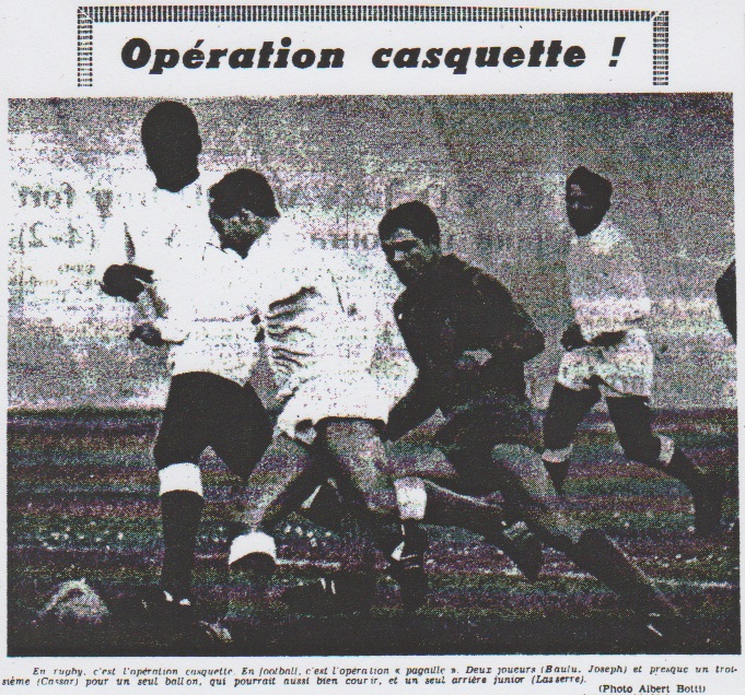 La défense, en tout cas, est bonne. Fioritti, bien qu'encore jeune, c'est bonifié avec le temps ; Facerias confirma sa valeur et le junior Lassere parait pétri de qualités. Mais on retiendra surtout le numéro 4 Daure un étudiant de 20 ans, fils d'un docteur du même nom, qui nous a rappelé par son étonnant dynamisme le Griffith des années se 47 ou 48. Au milieu du terrain, Cuxac, précis, lucide, fut certainement, le meilleur homme du match ; Griffith, souffrant du genou, ayant simplement tiré son épingle du jeu. Mais en attaque c'est le néant... Et voilà qui explique le mauvais classement des Biterrois. Seul Bacquier (le numéro 9), en nets progrès depuis la saison dernière, fit figure d'honorable. BAIT : impression plutôt favorable De l'O.M., on ne sait trop que dire. Sortant tout d'abord de ce désastre Tassone, égal à lui-même ; Sejnera à la rigueur bien sûre et bien entendu Escale. Markiewicz, qui ne devait pas jouer, fit honnêtement son travail. Mais Roigt, et surtout Hodoul pour des raisons qui nous échappent, sont en train de laisser passer la chance qui leur est offerte. Serait-il plus difficile de jouer contre des amateurs languedociens que contre des amateurs de la Division d'honneur, groupe Est ? Cassar était dans un de ces jours où rien ne réussit et Baulu contre-joua de façon surprenante. Tant et si bien que Joseph fut encore le moins déficient de l'attaque marseillaise. Pour terminer, enfin, une note assez optimiste. Débutant dans des conditions catastrophiques Bait, que l'on peut supposer intimidé, produisit une impression plutôt favorable. Bref, une nouvelle fois, le gros rouge biterrois est resté sur l'estomac des Marseillais. Maurice FABREGUETTES |