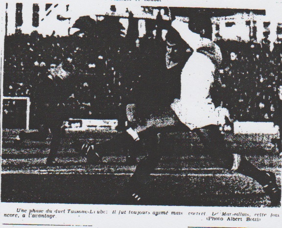 CHOEURS DES MARSEILLAIS "SI LOPEZ" À l'issue de la rencontre les Olympiens marseillais étaient naturellement déçus. On l'est toujours lorsque l'on vient de perdre. Surtout quand on s'incline par 1 à 0 après avoir eu l'occasion de marquer (aussi) son petit but. Déçu, les Marseillais n'en étaient pas moins souriants : ils avaient conscience d'avoir fait le maximum. Nul ne le contestera. Et puis il y a cette blessure de Lopez, blessure survenue trop tôt (4me minute) pour qu'on ne puisse penser qu'à onze l'O.M. aurait peut-être pu faire autre chose... Dans leur vestiaire les Phocéens sans chercher une excuse à leur défaite, ne pouvaient s'empêcher de faire remarquer : "Il nous a fallu jouer sans Henri 86 minutes durant. C'est beaucoup quand il s'agit d'affronter le leader chez lui..." Qu'ajouter à cela ? |