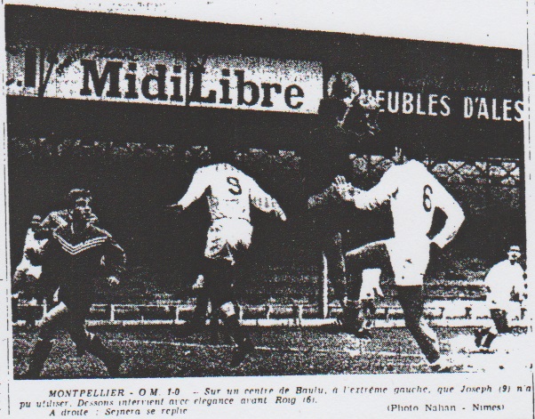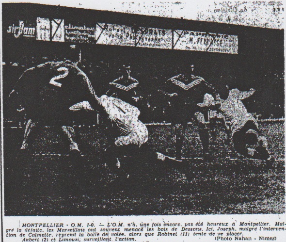 Enfin, cette réserve faite, nous pouvons écrire avec plaisir que l'O.M. nous apparut jouer à Montpellier en équipe ayant conservé toute son ambition et tout son dynamisme. Il y a, c'est certain, du ressort dans cette malheureuse équipe qui mérite d'être, un dimanche ou l'autre, servie par cette chance qui la fuit obstinément. Au tableau d'honneur citons en premier lieu Markiewicz, Roig et Sejnera qui furent parmi les meilleurs joueurs de la rencontre. Mention et également à Escale, Tassone, Baulu et Pradere CALMETTE le meilleur montpelliérain. Le S.O. Montpellier, lui, a franchement déçu, opinion d'ailleurs partagée par son entraîneur Favre. Toujours d'après lui, son attaque n'avait jamais aussi mal joué qu'hier. Par contre on a remarqué la classe de Calmette, l'un des meilleurs joueurs du match, la vivacité de Mosca et la réussite du gardien Dessons, bien que certaines de ses sorties furent aventureuses. |