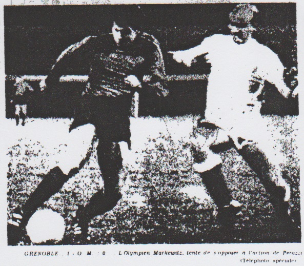 Le blessé Abad fut impeccable et préserva la victoire de son équipe. Le rendement de l'attaque marseillaise fut trop longtemps à peu près voisin de zéro. Cependant que devant un bon Escale, le bloc défensif, composé de Tassone, Debousy, Rouag, Julien et Markiewicz opérait sans génie, mais courageusement et efficacement selon son habitude. On a vu qu'au cours de la dernière demi-heure l'équipe marseillaise se racheta largement d'un début trop timide, et au cours de cette dernière période, eut l'occasion de s'attribuer le match nul. Il faut espérer qu'en d'autres occasions les Marseillais se souviendront de la leçon. Ce qui indique bien que Grenoble n'était pas invulnérable. Pourquoi avoir attendu la dernière demi-heure ? Sur le plan individuel, nous avons déjà parlé de Desgranges et Bossy, les régulateurs grenoblois. Au point de vue offensive, l'attaque locale valut par la valeur athlétique de son vant centre Teisseire, excellent de la tête, et par la subtilité du junior Ferrari |