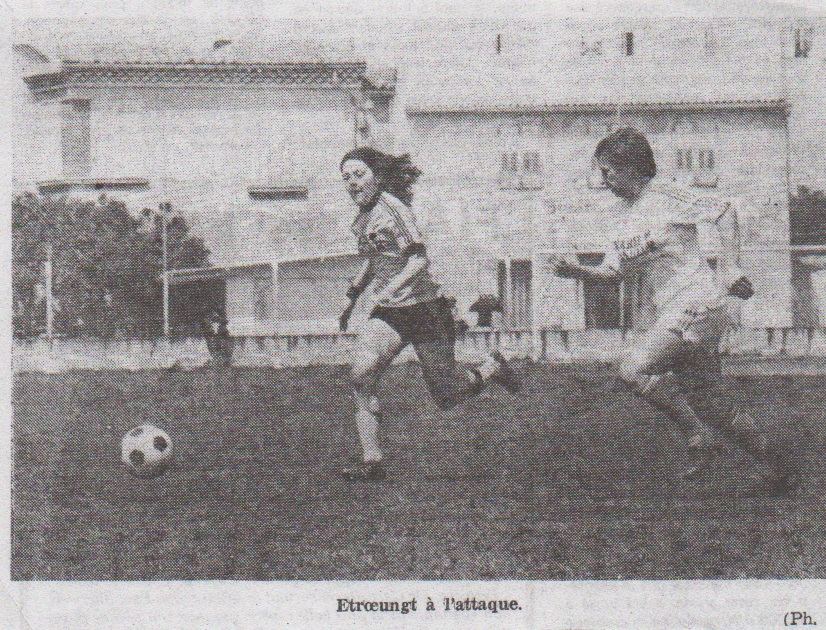 Les attaquants furent très "percutant", le milieu fut "très très bons" et derrière, les "2 grandes" ne laissèrent rien passer. Ce fut du tout bon et Carlier, la gardienne, n'eut aucun tir sérieux à arrêter. Certes, il y eut ce shoot de Juillard (22eme) dont fut état le correspondant de la Voix, mais "la balle est passée à 50cm au-dessus" indiquent MM. Bertrand et Hamel qui réaffirment : " on n'a jamais eu peu !" En effet, Reims à battu Lyon 3-1, et c'est à un nouveau choc Reims-Etroeungt que nous assisterons à la fin du mois pour la consécration suprême ! L'aller se jouera en Champagne (20) et le retour à Etroeungt (le 27 mai). C'est, on le voit une excellente chose ! Voilà bien une sacrée journée, une sacrée fête qui se préparent pour le coquet village d'Etroeungt, et pour toute la région ! D'ici là, les filles ne chôme Marseille !).Le 1er mai, match à Houplines - Dimanche, championnat du Nord à Pecquencourt, puis à la Pentecôte, match à Ghien et le lendemain - C'est la rançon de la gloire - confrontation internationale, avec les meilleures équipes européennes à ... Stuggart, Allemagne ! Un joli mois de Mai en perspective pour Etroeungt, et de belles émotions à venir pour le public, toujours aussi fidèle et enthousiaste ; un public que l'on ne retrouve nulle part ailleurs, et qui continuera longtemps à marquer sa confiance à cette sympathique équipe féminine d'Etroeungt dont on n'a pas fini d'entendre parler ! Allez Etroeungt.