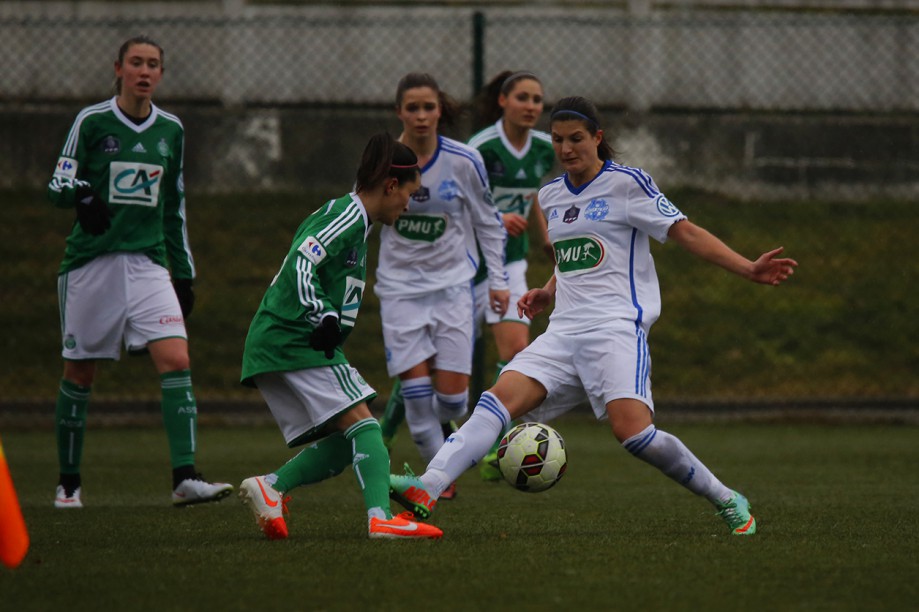 Face à l'Olympique de Marseille, pensionnaire de deuxième division, tout ne fut pas facile. Les Phocéennes débutaient parfaitement le match et mettaient en danger la défense stéphanoise mais Julie Perrodin était vigilante. Une garantie dans les buts pour Hervé Didier, après la blessure d'Arianna Criscione vendredi, à l'entraînement. " Nous espérons qu'Arianna n'aura pas une blessure grave mais nous savons que Julie (Perrodin) ou Marion (Mancion) peuvent répondre présentes lorsque l'on fait appel à elles. " Le 0-0 de la mi-temps était logique, les Stéphanoises ayant du mal à se procurer des occasions franches. Le deuxième acte était bien différent, et les Vertes, plus proches des buts adverses, se montraient plus dangereuses. Candice Gherbi reprenait victorieusement de la tête un coup-franc de Nora Coton-Pélagie, puis Sarah Palacin, dans son style propre, remportait son un-contre-un, après avoir été lancée en profondeur par Coton-Pélagie, encore. L'expulsion de Léa Rubio, pour une faute sur Sarah Palacin après le premier but, n'arrangeait pas les affaires marseillaises. " Les deux buts interviennent dans le dernier quart d'heure mais nous avons réussi notre deuxième mi-temps, analysait Hervé Didier. Le score aurait pu être plus ample. L'expulsion fut un tournant. Le plus important était de marquer le premier et d'assurer la qualification. " Avec ce succès, voilà les Vertes en 1/4 de finale de la Coupe de France. Le tirage au sort, qui inclura également les 1/2 finale, aura lieu ce lundi, à 17h, au Stade de l'Épopée de Calais, là où se disputera la finale. Lyon, Juvisy, Montpellier, Guingamp, Rodez, Vendenheim et Rouen accompagneront les Vertes dans le grand huit. " Je n'ai pas forcément de préférence pour le tirage, expliquait Hervé Didier. Lyon et Juvisy partent favoris, forcément. Derrière, nous jouerons nos chances à fond. " |