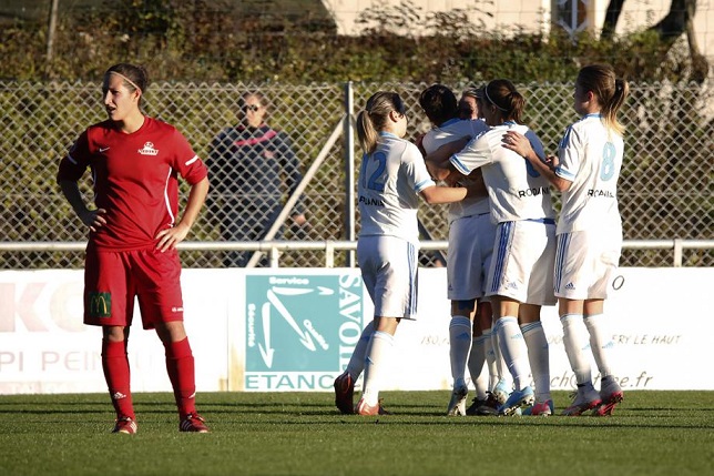 Il n'y a pas de petite victoire... Face à un adversaire très bien organisé et leur ayant opposé une résistance permanente, les Olympiennes se sont imposées dans la douleur. Mais la victoire est présente et importante car toutes les équipes de tête ont gagné. "Attention ! Attention ! Attention !" Dans sa causerie, Christophe Parra a prévenu avec insistance à trois reprises son groupe. Non, cette journée ne serait pas simple. Elle ne l'a pas été. La première satisfaction est d'apprécier la capacité de l'équipe à remporter ce type de rendez-vous. Cela n'aurait pas été le cas la saison dernière. La seconde est le sang-froid de Sandrine Brétigny, pas toujours en veine ce dimanche, à l'heure de l'ouverture du score. A cet instant, précis, malgré les ratés de la première période, l'expérience a parlé. Bretigoal a pris son temps : elle a suivi un long ballon mal apprécié par Bertino, s'est positionnée avec calme face à Excoffier, a pris la bonne information et elle a ajusté un lob victorieux. Avec calme. D'une saison à l'autre, la différence se situe aussi et surtout dans la gestion de ces situations.Le match ne se résume pas à ce seul temps fort. Les Olympiennes ont éprouvé de grandes difficultés. Sur une surface de jeu étroite, elles ont enduré le pressing permanent de Nivolet et ont longtemps cherché les bonnes réponses. Elles se sont d'abord précipitées en injectant trop de verticalité dans leur animation pour déstabiliser un bloc défensif compact, coulissant parfaitement, aidé dans cet exercice par l'étroitesse du terrain. La relation milieu-attaque des Olympiennes a manqué de performance. Il aurait été nécessaire de prendre plus de temps, d'être appliqué sur les deux premiers ballons après la récupération, d'avoir un temps de possession plus important et de renverser le jeu avec à propos. Une demi-heure a été nécessaire pour le comprendre, cela a ouvert des possibilités. Le contenu technique n'a pas été celui d'un leader, mais il en va aussi ainsi d'un match de championnat, appelons cela une journée plus pauvre, où la compréhension des événements et la gestion de la rencontre sont des éléments de première importance dans la construction d'un résultat et l'affirmation d'un statut. A défaut de toujours avoir le contrôle de la rencontre, face à une équipe n'ayant pas le même poids offensif, mais très habile dans les sorties de balle, les Olympiennes ont mis leur coeur sur la pelouse. La fin du match en atteste. Dix dernières minutes de grande intensité, un box to box incessant où l'OM a cherché le KO, avec des situations malheureusement gâchées, où Nivolet a tout donné pour revenir. Quelques fautes auraient pu pénaliser les Olympiennes, mais la concentration sur ces situations chaudes leur a permis aux Olympiennes. La joie du staff au coup de sifflet final en dit long sur le soulagement. Il y a peu, ces points appartenaient à la catégorie des regrets. Ils accompagnent aujourd'hui le quotidien des "Dames en blanc". Quand on ambitionne l'accession, il n'y a pas de petite victoire.... ______________________________________________ Réaction de Christophe Parra, l'entraîneur de l'équipe féminine