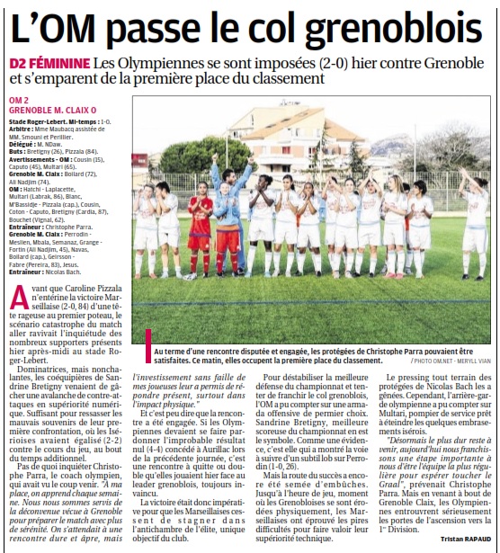 A la hauteur de leur statut Au terme d'un match âpre, tendu, mais de haut niveau, les Olympiennes, sérieuses se sont imposées 2 à 0 sur leur adversaire direct pour l'accession. Un pas est réalisé, mais le chemin est encore long... De l'intensité, des duels, des temps forts, des temps faibles, des duels, beaucoup de duels, des buts, des émotions diverses : OM-Grenoble Claix a été un match de haut de tableau, un rendez-vous de haut niveau où chaque ballon a été disputé avec âpreté et détermination. Pour écrire un tel match, il convient d'être deux. Les Olympiennes n'ont pas eu la vie facile car, depuis le match aller, l'équipe iséroise en gagné en maturité, en cohésion, en résistance. Elle a été une adversaire de premier ordre et sa place n'est pas usurpée. Mais les filles de Christophe Parra ont ce supplément d'âme en elles pour se sublimer dans les grands rendez-vous. On se répète, la fusion de joueuses d'expérience et l'insolence de leurs jeunes joueuses est une qualité fondatrice dans le parcours actuel. On repense aussi à la discussion en aparté avec Sandrine Brétigny dans le courant de la semaine précédant le coup d'envoi : "Aurillac a été un mal pour un bien." Elle en semblait certaine. Le vécu certainement... Le bien a surgi ce dimanche, foudroyant Grenoble Claix à des instants importants de la rencontre. Agencées en 4-4-2 pour la première fois au coup d'envoi depuis le début de la saison, les Olympiennes sont parties pied au plancher en exerçant un pressing constant sur les lignes défensives adverses dans le seul souci de réduire à néant les relations préférentielles de Grenoble Claix, notamment les longs ballons pour trouver Fabre et Jesus dans la profondeur. Cela a fonctionné un temps, quand le boulot a été accompli correctement, mais quand il s'est agi de récupérer, quand Grenoble Claix a fait reculer Jesus d'un cran, l'OM est revenu en 4-3-3. Une capacité d'adaptation propre à leur culture, préparée en amont, et intéressante pour un staff, mais l'équipe a joué un peu avec le feu dans les dernières minutes de la première période. Sans conséquences heureusement. Le but de Sandrine Brétigny a été une première délivrance. Il a été le bienvenu. Bienvenu car Grenoble Claix a haussé son niveau après le repos en imposant plus d'impact, en gagnant plus de duels, en mettant les Olympiennes sur le reculoir, en profitant de la vitesse d'Ali Nadjim, à deux doigts d'égaliser une minute après la reprise mais Anaïs Hatchi veillait. Grenoble Claix a poussé et Grenoble Claix s'est exposé à des contres rapides, impulsées par Cindy Caputo, remuante, insaisissable mais parfois un peu trop gourmande. Les Olympiennes ont eu l'occasion de plier la rencontre sur trois ou quatre occasions où il a manqué de réalisme, de justesse. Pendant ce temps, la défense olympienne a présenté une copie d'une grande propreté, ferme, efficace, d'une grande rigueur, un comportement indispensable pour solidifier l'acquis. Celui-ci a été bonifié par une tête majestueuse de Caroline Pizzala à la reprise d'un corner de Cindy Caputo. La capitaine olympienne a soulevé le stade Roger-Lebert, bourré jusqu'à la gueule. Elle veut l'accession, elle vit pour ça au quotidien et elle y a apporté une grande contribution en libérant son équipe. Ce succès est mérité. Les Olympiennes l'ont acquis avec leurs tripes, leur coeur, leur sérieux au terme d'une journée dont chaque acteur se souviendra, pour tous les petits détails d'avant-match, comme les fleurs offertes par Christophe à ses joueuses et au staff. Un pas a été réalisé. Il n'est pas le dernier. La réalité est de ne pas oublier les huit prochains accomplir. L'avenir est en marche. Il faudra s'en souvenir chaque dimanche jusqu'au dernier coup de sifflet final... ______________________________________________ Réaction de Christophe Parra, l'entraîneur de l'équipe féminine - Christophe, tout le monde espérait ce succès. C'est une victoire totale, dans le jeu, dans l'engagement. "C'est une victoire par le score, par les points engrangés aussi. Dans le jeu, on a eu affaire à une excellente équipe de Claix. Les filles ont répondu présentes, elles ont respecté le plan de jeu. Elles se sont mobilisées pour rester bien organisées, concentrées, réfléchies, ils étaient les trois maîtres-mots du jour. Bravo à elles, dans l'esprit, dans la solidarité, dans la notion de collectif. C'est leur match-référence." - Face à un adversaire de très grande qualité, les filles n'ont rien lâché. "Elles n'ont rien lâché dans l'esprit, le mental, elles ont réussi à s'adapter à l'évolution de l'organisation de Claix tout au long du match. Cela leur a demandé beaucoup d'investissement, de travail. Le résultat les récompense, dommage quand même de ne pas avoir tué le match plus tôt." - Ce succès est-il un virage déterminant pour la suite de la saison ? "On vient de franchir une belle montagne. Il en reste huit. Je ne veux jouer le modeste, cacher ma joie, celle du groupe et du club, il faut savourer, mais il faut très vite se mobiliser pour préparer la suite et garder en tête ce qui nous est arrivé la saison passée, tous ces points perdus en route. Le championnat est loin, très loin d'être terminé. On voit le sommet, mais le pic est encore très loin. Le plus dur reste à venir." - Prochain déplacement à Flacé Mâcon, formation que vous avez largement battue à l'aller. Mais ses résultats en attestent, il n'y aura pas de petit match. "Non. Toutes les équipes ont progressé depuis le début de la saison. Il faut s'attendre à beaucoup de difficultés. Chaque équipe essaie de réaliser le match de l'année contre nous, c'est normal, je les comprends quand on les rencontre. Il reste encore des cols à gravir avant le sommet." |