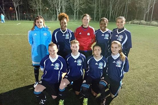 L'OM en quarts de finale Les Olympiennes se sont qualifiées mercredi soir pour les quarts de finale de la coupe de Provence féminine - Trophée Arlette Soubrié. Le premier quart d'heure a été délicat. Face à une vaillante formation des Milles, se battant sur tous les ballons, les Olympiennes ont mis du temps à s'adapter à l'étroitesse du terrain et ont attendu 12 minutes avant de trouver le chemin des filets. L'ouverture du score de Chanice Agbanglanon leur a permis de poser le jeu et de gagner en sérénité. En prenant le dessus physiquement et techniquement, elles ont déroulé en inscrivant huit autres buts, dont une Madjer de leur capitaine Stéphanie Hoffele. L'équipe de division d'honneur, inscrite pour la compétition, enchaîne un neuvième succès d'affilée toutes compétitions confondues et se qualifie pour les quarts de finale. Prochain rendez-vous ce dimanche 28 février contre le FA Marseille, à 15 heures au stade Roger-Lebert, en championnat. |
