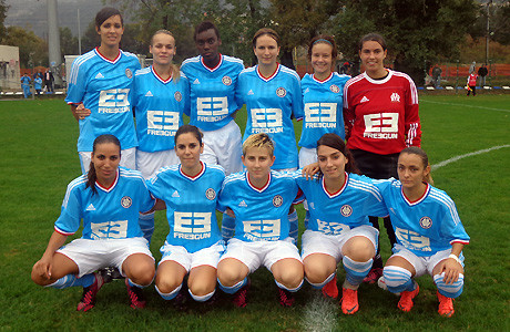 Pour ce premier match à domicile, les wOMen recevaient le Phénix Cavaillon au stade de la pépinière de Saint-Menet. Les féminines se sont retrouvées sous des trombes d'eau ce qui laissait présager un match compliqué avec des conditions difficiles, le report ayant même été envisagé. Finalement la pluie s'est arrêtée quand les filles sont sorties pour l'échauffement. Dès l'entame de match, la première mi-temps commençait avec beaucoup de rythme et était nettement à l'avantage des olympiennes qui prenaient très rapidement le jeu à leur compte. Le mouvement et la disponibilité étaient au rendez vous et c'est logiquement qu'Angéline Guillemard ouvrait le score dès la 5ème minute. (1-0) Trois minutes après suite à un très bon mouvement d'Elodie Debreuil sur le coté droit, la petite milieu de terrain centrait et c'est Alicia Pourquiès qui est à la retombée du ballon et marquait dans le but vide (2-0). A la 19ème Alicia Pourquiès doublait la mise de son excellent pied gauche, d'une frappe limpide à l'entrée de la surface. (3-0) Le ballon circulait très bien dans les rangs marseillais et c'était un réel plaisir à voir! Suite à une récupération de Laura Gouy, Cathy Abou-Deraa débordait et décochait une lourde frappe qui se logeait sous la barre, et ça faisait 4-0 pour l'OM ! Les olympiennes continuaient de pousser, et c'est sur un corner d'Alicia Pourquiès qu'Emilie Pelloux catapultait le ballon de la tête dans les buts de la gardienne adverse. Osrra Bolomey, nouvellement rentrée, se mettait rapidement dans le sens du jeu et marquait un joli but suite à une passe d'Alicia Pourquiès, but malheureusement refusé pour hors jeu. 5-0 à la pause, les féminines n'ont pas mis longtemps pour prendre le contrôle de la partie face à une équipe de Cavaillon qui s'est bien renforcée depuis la dernière rencontre avec l'OM en juin dernier lors des barrages. Dans les vestiaires, le coach insistait beaucoup sur la nécessité d'accélérer le jeu, et cela doit passer par du jeu rapide à une touche de balle. En causerie d'avant match il avait insisté sur la solidarité et l'importance de suivre les consignes tout en apportant sa touche personnelle. Le match a reprit avec pour objectifs pour les blanches et Bleues de maintenir leur domination en appliquant les consignes du coach. Les olympiennes mettaient donc le pied sur le ballon en ce début de seconde période. Sarah Koutbi , qui effectuait un très bon match tenta sa chance de 35 mètres et marquait un but somptueux du pied droit, le ballon venant se loger dans la lucarne opposée. Un beau cadeau d'anniversaire pour la jeune olympienne qui fêtait ses 21 ans aujourd'hui. C'est cette même Sarah Koutbi qui débordait à droite et adressait un caviar de centre pour Cathy Abou-Deraa qui reprenait victorieusement pour le 7ème but de la journée. Le coach faisait tourner pour soulager les organismes mis à l'épreuve par une longue préparation physique. Suite à une bonne relance de la défense, Angéline Guillemard, la capitaine, faisait un une deux avec Anaïs M'Bassidjé et terminait cette belle action par un joli tir dans le petit filet opposé. Le jeu était un peu moins fluide, les passes moins précises et, à 10 minutes de la fin, c'est un exploit individuel d'Alicia Pourquiès qui gagnait son un contre à face à la gardienne. Hat trick pour la numéro 10 olympienne ! Elle ne s'arrêtait pas là puisqu'une minute plus tard , Jenna Berrahou débordait coté droit et déposait le ballon dans la surface pour Alicia qui n'avait plus qu'à pousser le ballon du bout du pied. Sur cette action la gardienne adverse se blessait et était remplacée par une joueuse de champ. L'intensité du match baissait peu à peu et suite à une perte de balle olympienne dans le milieu de terrain adverse, un contre rapide obligeait Farah N'Ser à tacler l'attaquante dans la surface, penalty! Marta Garcia Reyes , qui jusque là n'avait pas eu grand-chose a faire, devait faire le boulot pour préserver le but inviolé. La tireuse s'élançait, et frappait... sur la poteau, Marta Garcia Reyes, partie du bon coté, était encore là pour repousser le tir qui a suivi. Elles en resteront là pour aujourd'hui! Très bon match des féminines qui ont maîtrisé leur sujet de bout en bout, à noter la très belle performance d'Anaïs M'Bassidjé, qui n'a pas marqué aujourd'hui mais à grandement participé à l'animation offensive, il ne manque plus qu'un petit but pour débloquer son compteur et augmenter son capital confiance ! On se retrouve dans 2 semaines pour le déplacement des filles à Monteux !