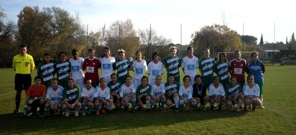 - En premières mi-temps, les débats sont assez équilibrés même si en tout début de rencontre l'OM dominait légèrement. Tout se passe à présent au milieu. Pas d'actions significatives de part et d'autre à signaler. - 44ème : L'OM domine mais à une minute de la fin de la première période, Emilie vient de se prendre un carton jaune. - A la mi-temps, Christophe Parra a changé son système de jeu de 4-2-3-1 il est passé en 4-4-2. Farah N'Ser, Elodie Debreuil et Sarah Koutbi sont sorties et Anaïs M'Bassidjé, Hadjia Ben Abdelghani et Laetitia Abou-deraa sont rentrées. 55ème : débordement de Cécilia Vignal coté droit qui centre pour Angéline Guillemard qui fait une reprise de volée au premier poteau en pleine lucarne coté opposé magnifique. 63ème : Alicia Pourquiès de l'entrée de la surface de réparation, frappe du pied gauche suite à un festival dont elle a le secret, passe de derrière la jambe, elle a éliminée une adversaire et a déclenché sa frappe en pleine lucarne : magnifique. 69ème : Mini pouce qui avait débordé fait un centre qui trouve Alicia Pourquiès qui passe en retrait pour Anais M'Bassidjé au premier poteau qui ajuste la gardienne adverse. 70ème : Alicia Pourquiès qui a un peu trop poussé son pied se prend un jaune....aie ça fait deux avec celui d'Emilie Pelloux. 83ème : coup franc de Cathy Abou-Deraa coté gauche qui atteint la transversale et retombe dans les pieds d'Alicia qui n'a plus qu'à pousser ce ballon au fond des filets. 84ème : carton jaune pour Cécilia Vignal...Aie Aie Aie ça fait 3 avec celui d'Emilie, Alicia...tout doux les filles!!! Tactique : Christophe Parra a aligné un 4-2-3-1: avec Marta Garcia Reyes dans les buts, Laura Gouy en latérale gauche et Farah N'Ser en latérale droite, Camille Perrin et Emilie Pelloux en défense centrale, au milieu: Elodie Debreuil et Sarah Koutbi. Alicia Pourquiès en 10 avec Cathy Abou-Derra à sa droite et Cécilia Vignal à sa gauche et en pointe la capitaine Angeline Guillemard. |