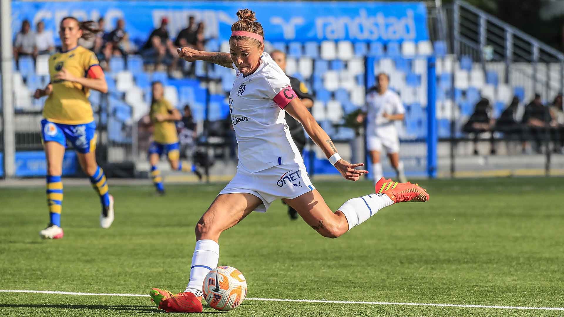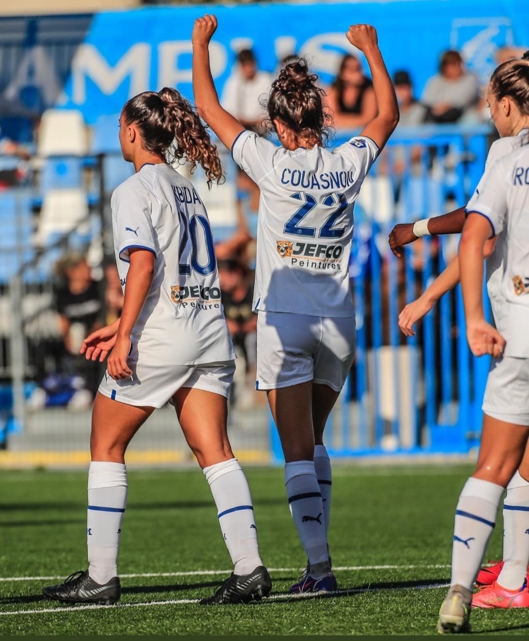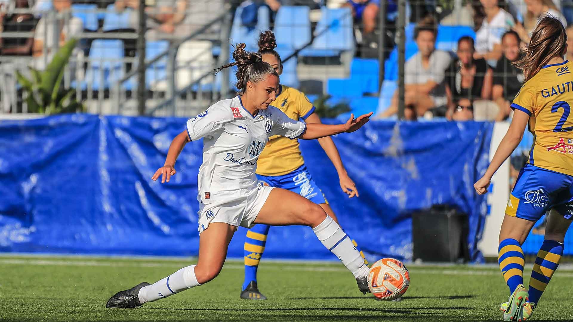 Notre équipe de D2 Féminine poursuit son parcours sans-faute en alignant un cinquième succès contre Montauban. La réception de Montauban, quatrième avant cette cinquième journée de D2F, était le premier véritable test face à une équipe du haut de tableau pour nos Olympiennes. Elles ont parfaitement négocié cette rencontre avec un premier but de la capitaine Ashley Clark avant la demi-heure de jeu. En seconde période, les Sénégalaises ont aggravé la marque. Mama Diop, tout d'abord a superbement repris de la tête un centre de Roxane Couasnon, puis en fin de match Ndeye Awa Diakhaté a trompé la gardienne adverse. Avec ce succès, le cinquième en autant de journées, l'OM est deuxième avec 15 points à égalité avec le leader, l'AS Saint-Etienne, qui a une meilleure différence de buts (+25 contre +18). Lors de la prochaine journée, le dimanche 23 octobre à 13 heures, la formation de Yacine Guesmia se déplacera sur la pelouse d'Albi Marssac, septième avec 6 unités. |