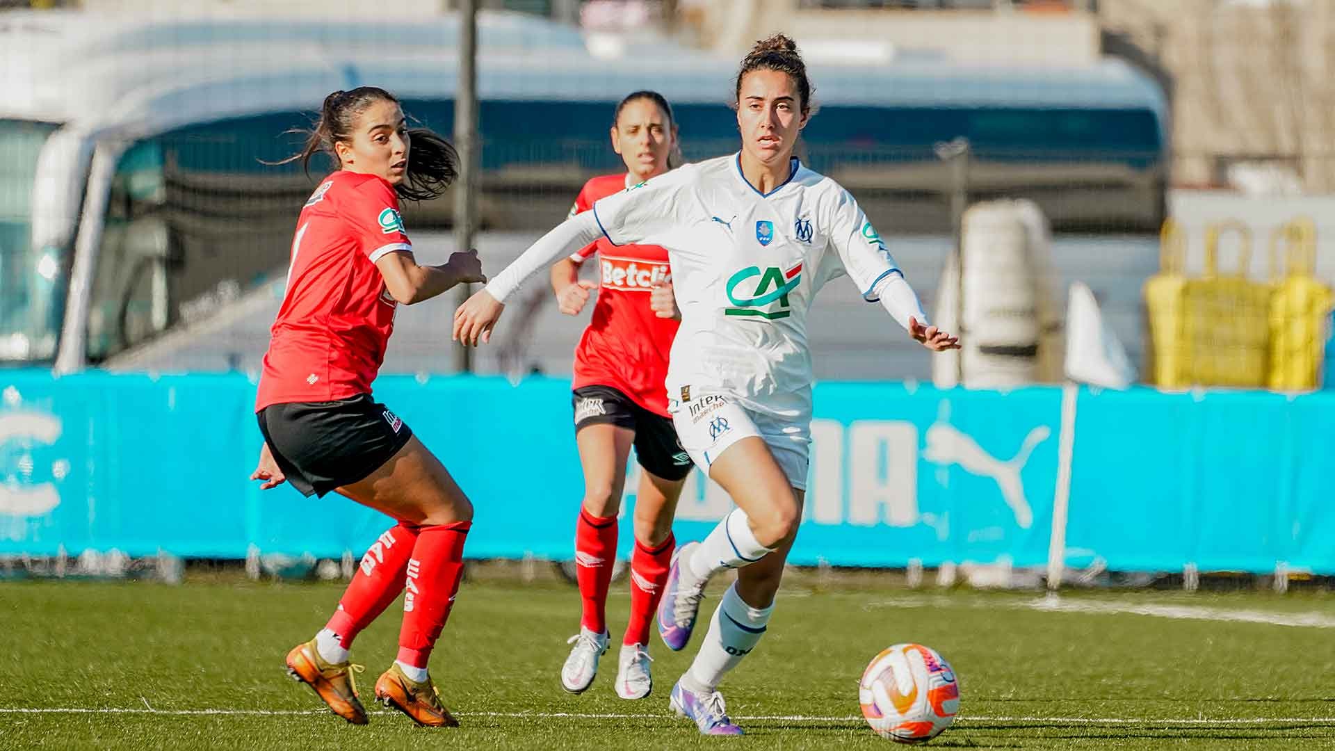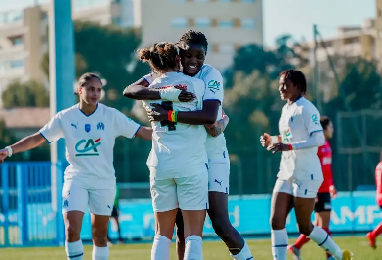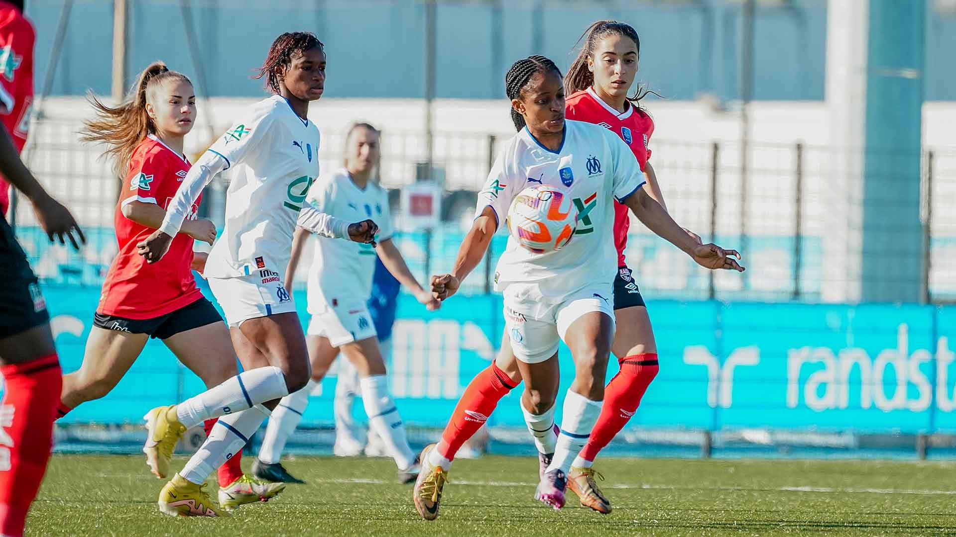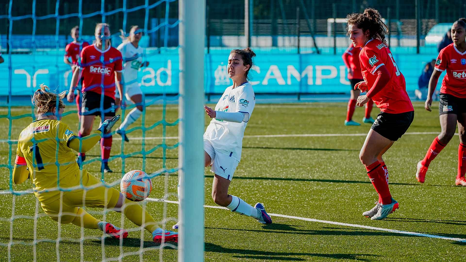 Dimanche après-midi, l'OM s'est qualifié pour les quarts de finale de Coupe de France féminine en éliminant l'En Avant Guingamp aux tirs au but. La réception d'une équipe de D1 en huitième de finale de Coupe de France féminine avait valeur de test pour les joueuses de Yacine Guesmia qui jouent les premiers rôles en D2. Nos Olympiennes ont pris le match par le bon bout en marquant deux buts en première période par Ashley Clark et Roxane Couasnon. Les Bretonnes ont réagi en seconde période. Alison Peniguel et Sarah Cambot ont contraint l'OM à disputer la séance des tirs au but. Nos tireuses n'ont pas tremblé et se sont imposées 6 à 5 dans cet exercice. L'OM jouera donc pour la première fois de son histoire les quarts de finale de Coupe de France féminine. Le tirage au sort se déroulera le jeudi 2 février à midi. |