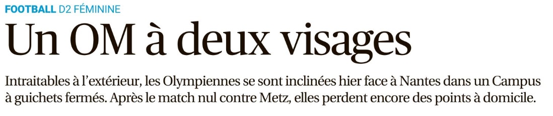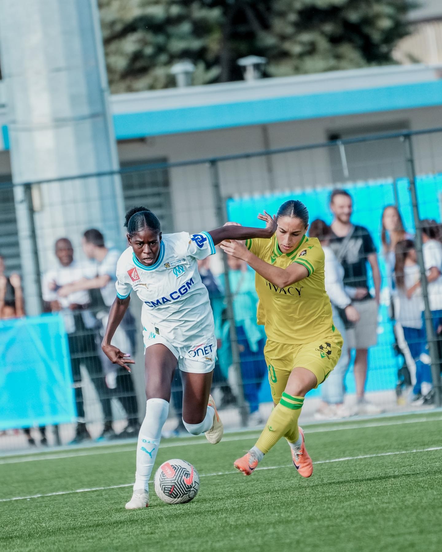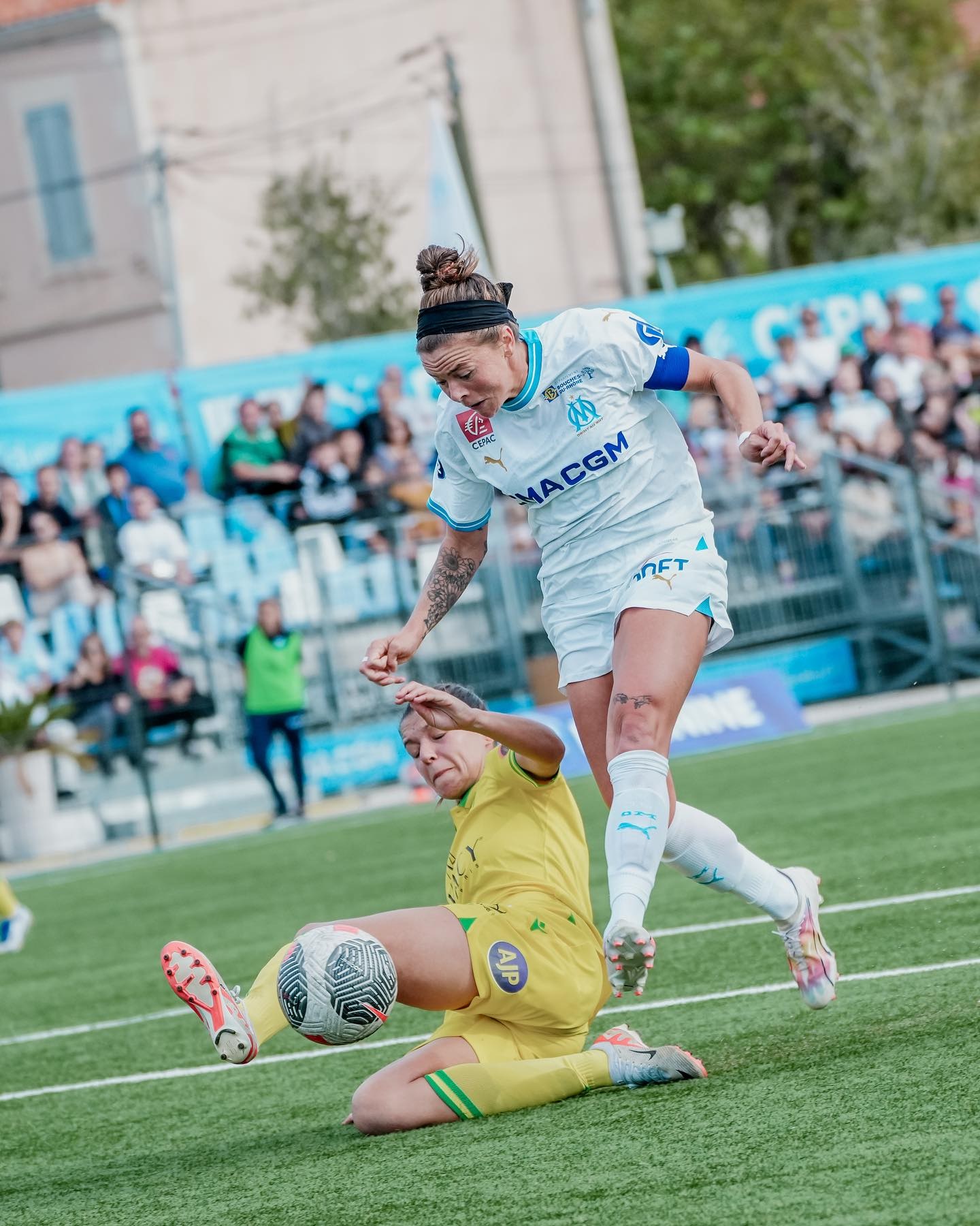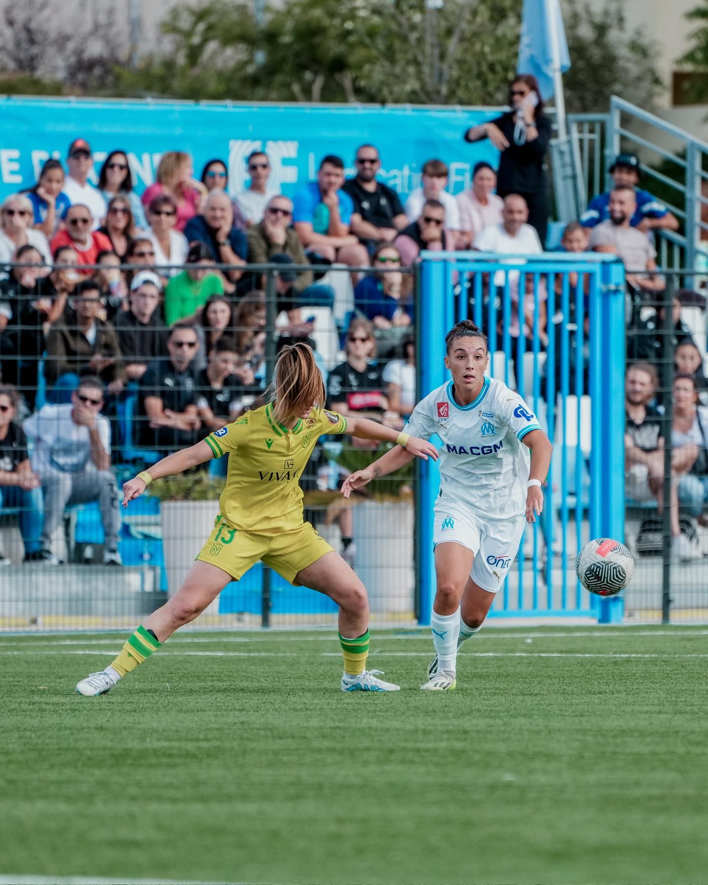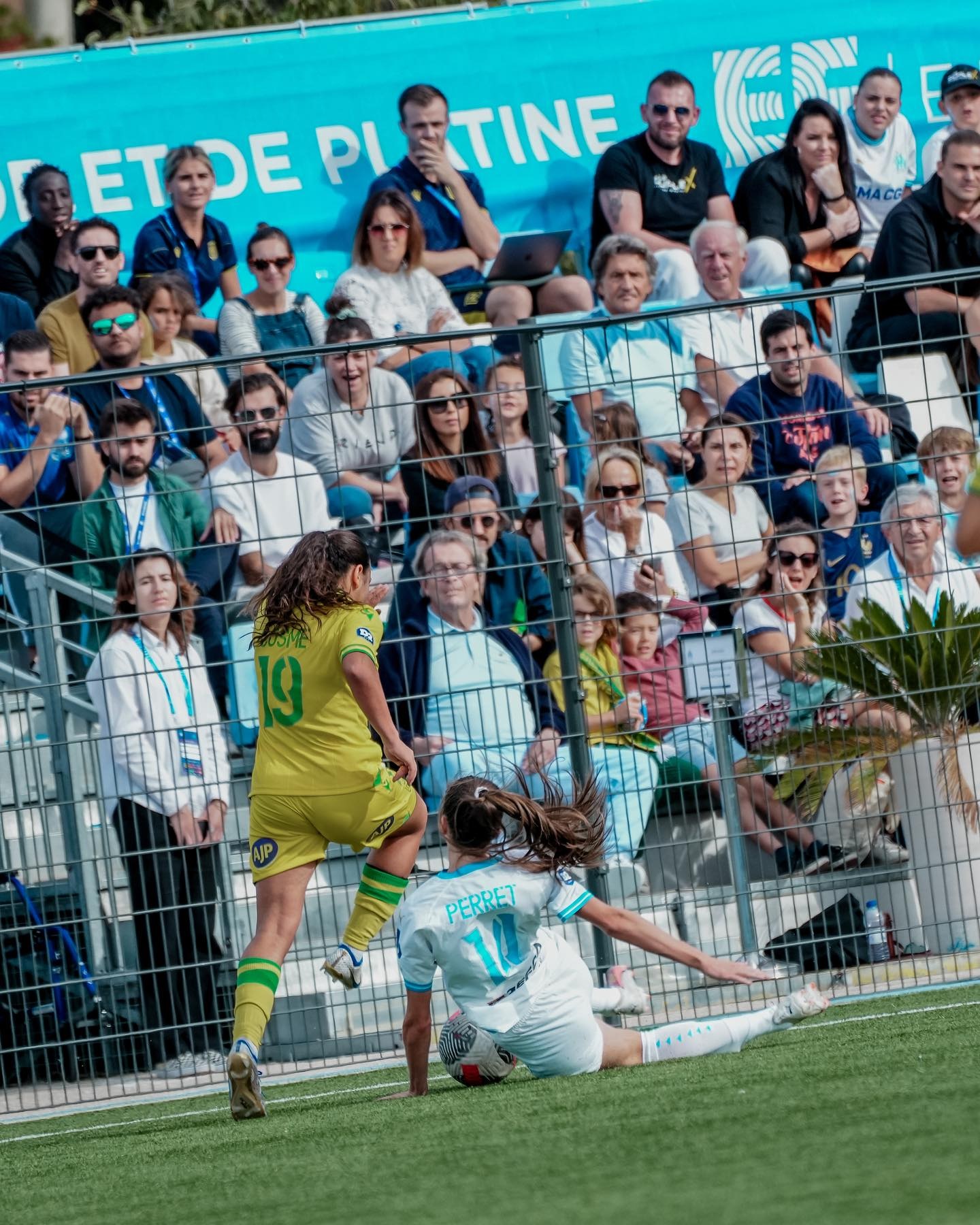 Nos Olympiennes ont été battues par le FC Nantes dimanche à l'OM Campus. Ce match de la cinquième journée de D2 Féminine était l'affiche du week-end entre le deuxième, l'OM et le troisième, le FC Nantes. Dominatrices au niveau de la possession du ballon en première période, les joueuses de Yacine Guesmia n'ont pas trouvé la faille dans la défense des Canaris, malgré une frappe sur le poteau de la gardienne nantaise, Emily Burns. En seconde période, les Nantaises parviennent à inscrire, sur coup franc, l'unique but de la partie et nos Olympiennes ont à nouveau touché les montants adverses. Elles n'ont pas réussi, malgré le soutien du public, à faire trembler les filets. Après cette défaite, la première de la saison, l'OM est troisième au classement à trois longueurs du leader, le RC Strasbourg. Lors de la prochaine journée, le dimanche 5 novembre à 13 heures, nos Olympiennes se rendront sur la pelouse d'Orléans, neuvième au classement. |