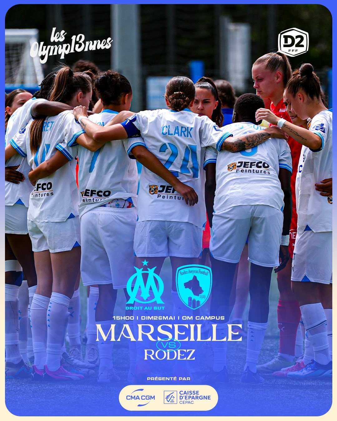 L'équation était simple pour notre équipe de D2 Féminine. Elle devait, face à Rodez AF, faire un meilleur résultat que Nantes qui affrontait, au même moment, Albi Marssac. Les joueuses de Frank Borrelli faisaient sauter le verrou aveyronnais en fin de première période grâce à Mama Diop. La Sénégalaise doublait la mise au retour des vestiaires. À peine entrée en jeu, Darlina Joseph faisait trembler les filets adverses. C'est ensuite Jenny Perret qui marquait le quatrième but avant que Roxane Couasnon, en toute fin de rencontre, ne profite d'un cafouillage dans la surface de but pour sceller le joli succès olympien. Cinq buts et trois nouveaux points pour nos Olympiennes mais du côté de la Loire Atlantique, Nantes s'imposait 2 à 0 et terminait, à la faveur d'une meilleure différence de buts particulière, à la deuxième place devant l'OM, troisième. |