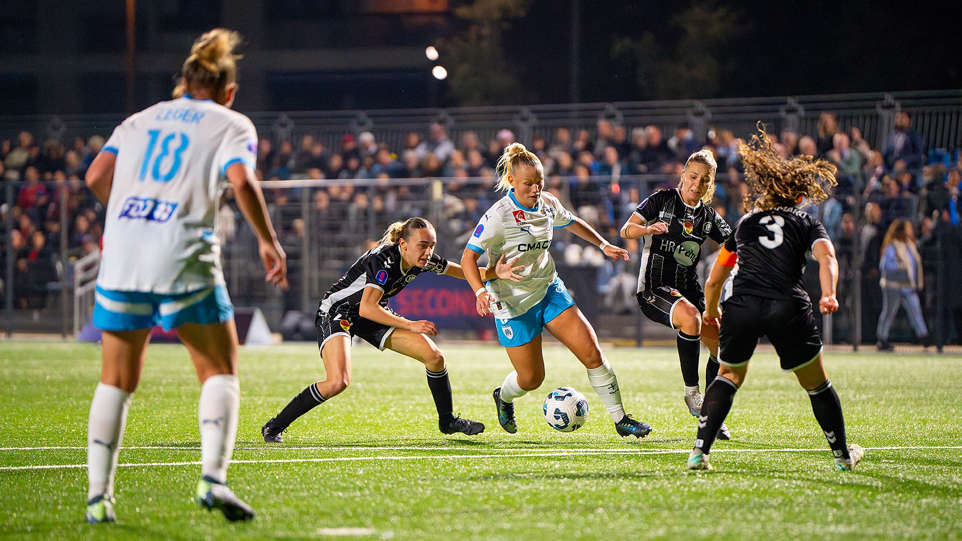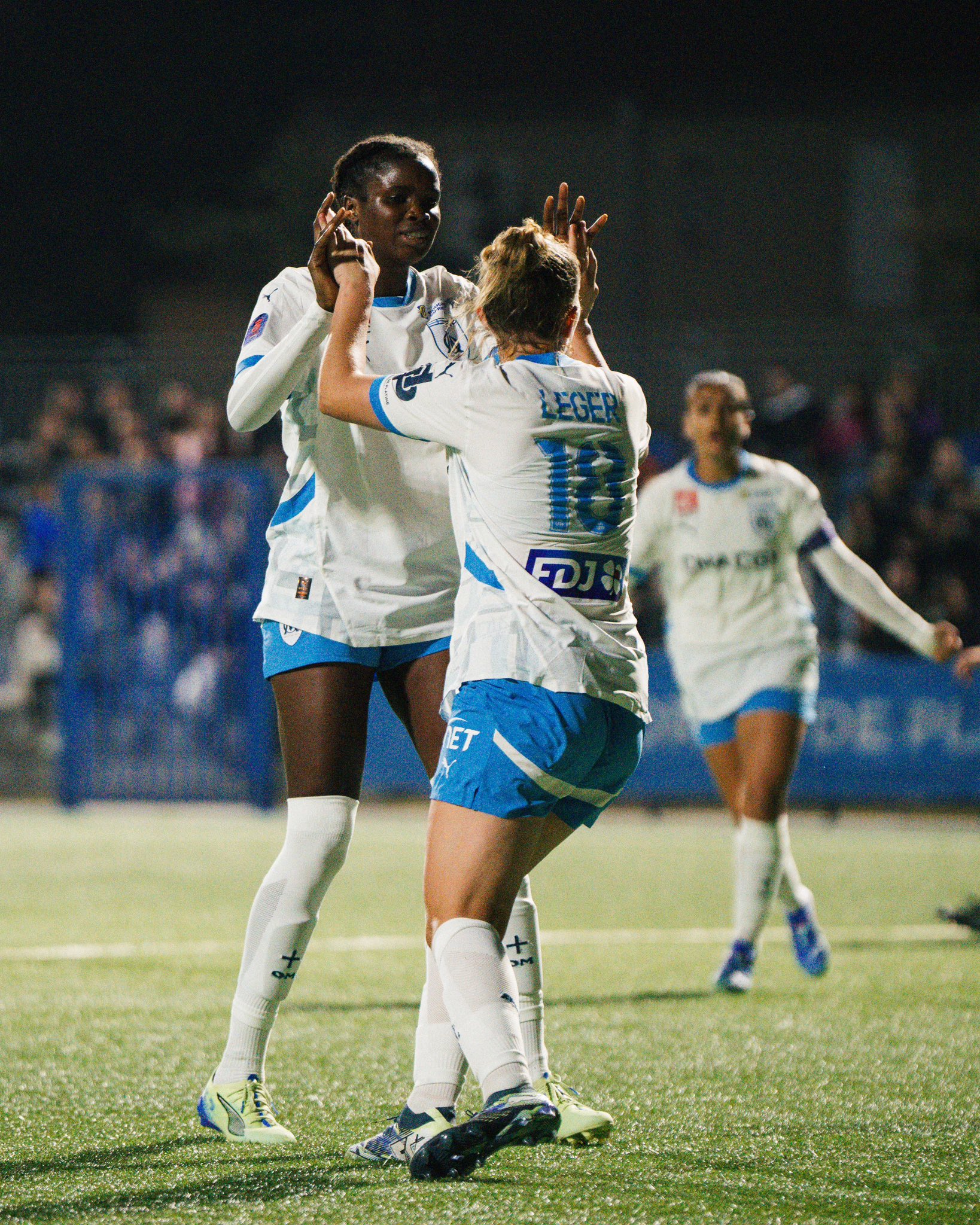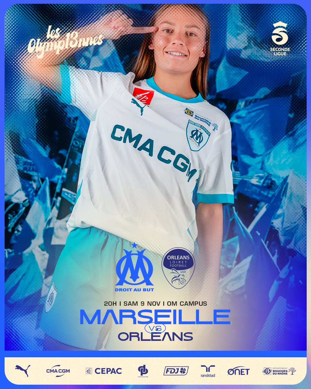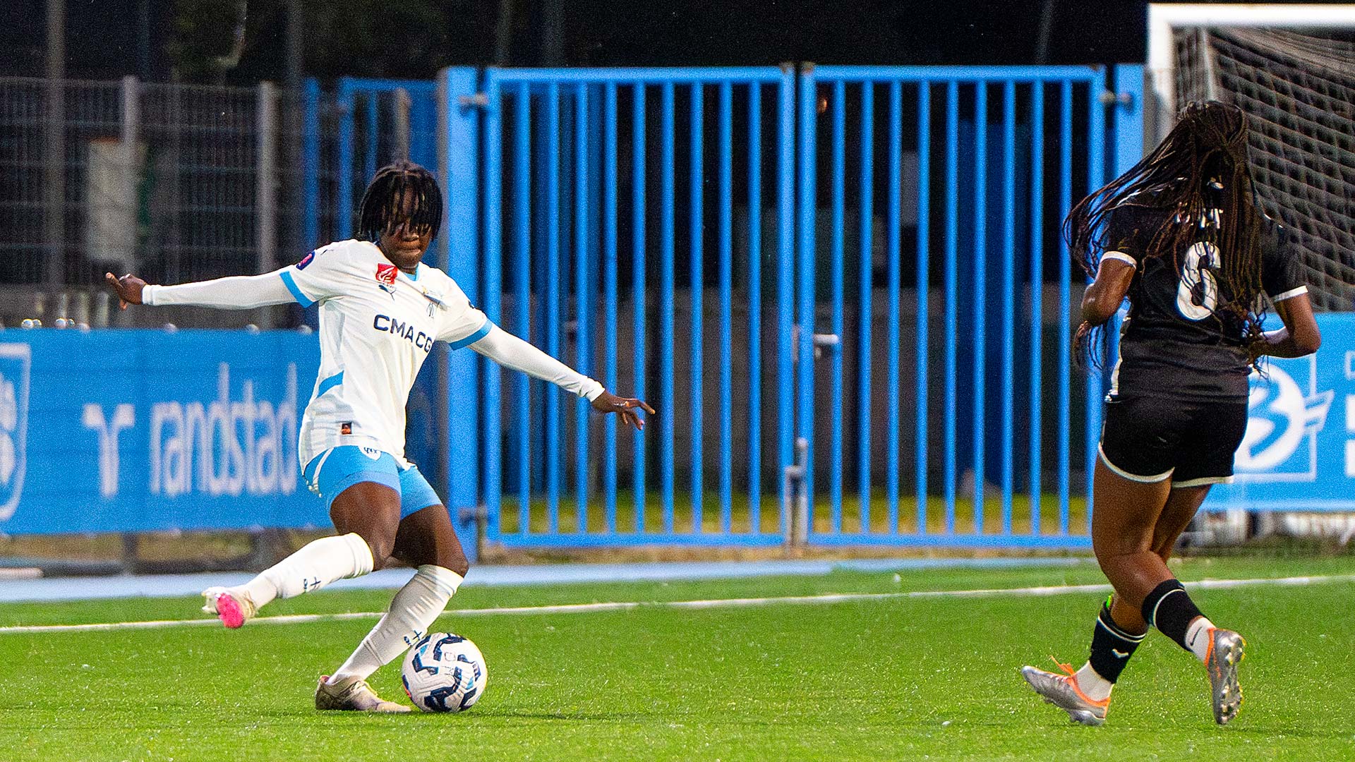 Notre équipe féminine a battu l'US Orléans Loiret à l'OM Campus sur le score de 2 à 1. Nos Olympiennes recevaient l'US Orléans Loiret à l'OM Campus à 20 heures, le samedi 9 novembre. Les joueuses de Frédéric Gonçalves ont bien entamé la rencontre. Dominatrices, elles ont eu plusieurs occasions et ont concrétisé l'une d'elles à la 25e minute par Marie-Charlotte Léger. Notre attaquante a également touché la barre transversale adverse à deux reprises. En seconde période, elles ont gardé un rythme élevé. Entrée peu de temps avant, Inès Kbida a doublé la mise. Orléans, dernier au classement, a réduit l'écart en fin de partie. Dans la course aux premières places, l'OM a pris trois points importants. Au classement, l'OM est quatrième avec 14 points à deux longueurs du leader lensois. Lors de la prochaine journée, le dimanche 17 novembre à 14h30, l'OM accueillera Rodez AF à l'OM Campus. |
