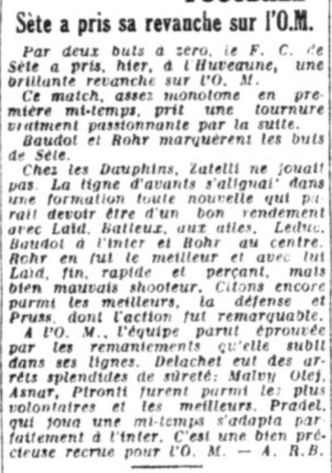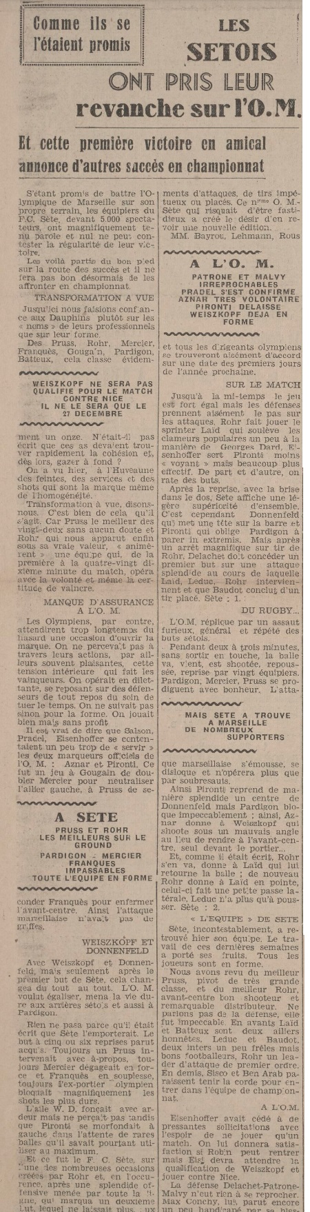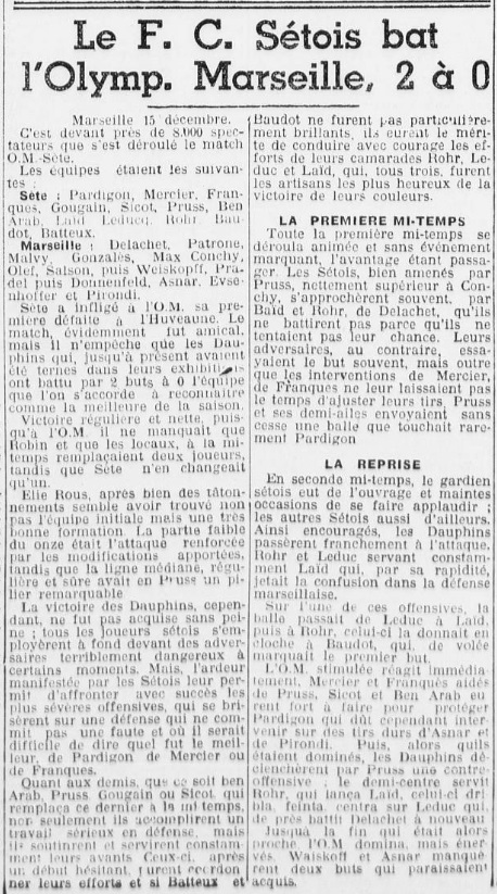 Résumé La Provence Sportive du 16 décembre 1940 |