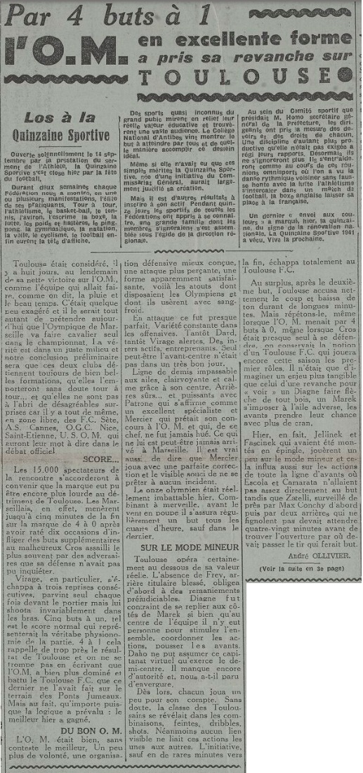 Résumé La Provence Sportive du 29 septembre 1941 |