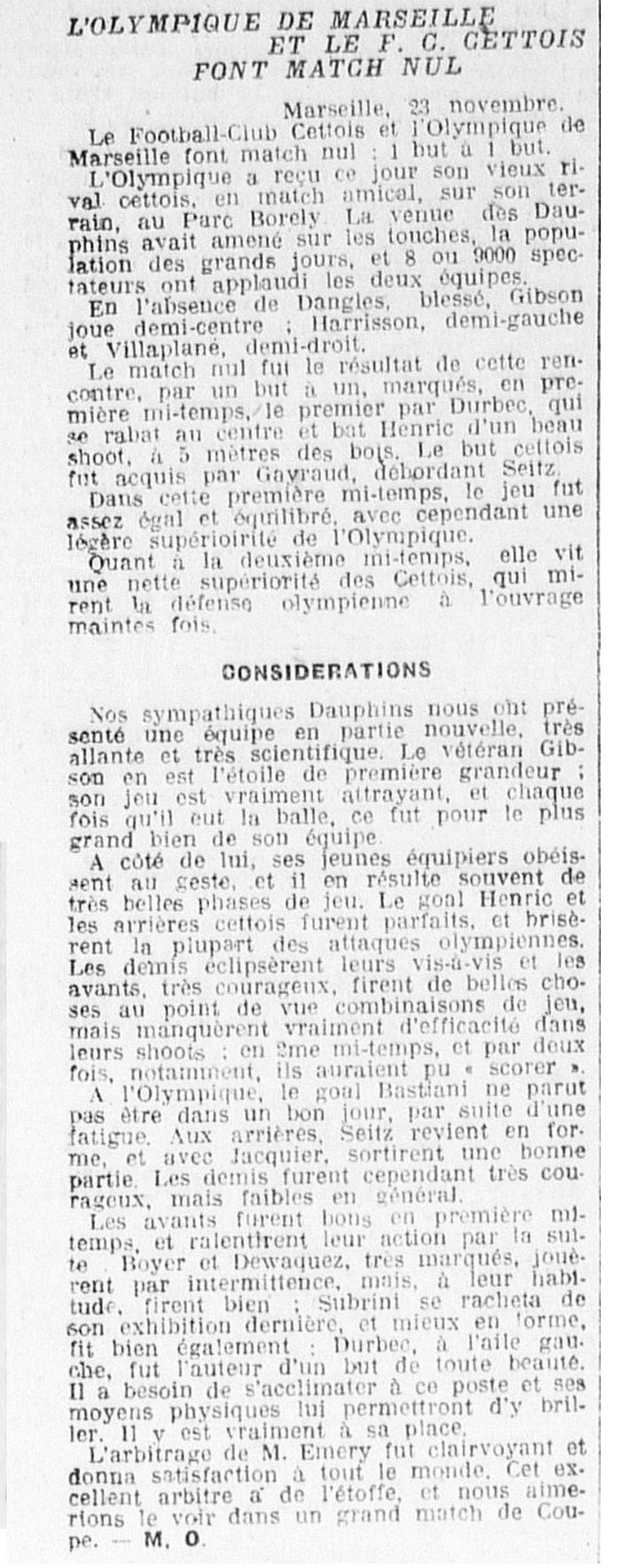 Résumé Le Meridional du 24 novembre 1924 |