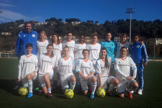 La DH réagit Menée au score, l'équipe de division d'honneur de la section féminine a réagi pour s'imposer aisément. Quinze jours après le revers concédé à domicile face à Monteux (1-3), l'équipe de division d'honneur féminine a retrouvé le sourire cet après-midi à Cagnes Cros. Avec une charnière centrale (Laure Roffe-Vidal - Camille Perrin) rompue aux joutes de la D2, le résultat se révèle logique au regard encore du classement de l'hôte du jour. Pourtant, les Olympiennes ont eu du mal à se mettre en route. Un début de rencontre poussif concrétisé par l'ouverture sur coup franc des Azuréennes. Ce but a réveillé le collectif. En deux minutes, l'équipe de François Zmyslony a repris les affaires en main, en égalisant d'abord par Lauriane Abolivier sur une passe décisive de Camille Perrin, puis en prenant l'avantage par Joeylie Fucito, à la suite d'une ouverture de Chanice Agbanglanon. Les Olympiennes n'ont plus concédé de terrain. Après la pause, au gré des changements opérés, elles ont construit un large succès matérialisé par un lob d'Osrra Bolomey (50e), un but de Laura Sortino servie par Alison Branchereau. Tania Renda et Chanice Agbanglanon, sur penalty à la dernière minute, ont apporté leur touche. François Zmyslony attend une confirmation la semaine prochaine à domicile contre Mouans-Sartoux, à 15 h, au stade Paul-Le Cesne, face à un prétendant à l'accession. |