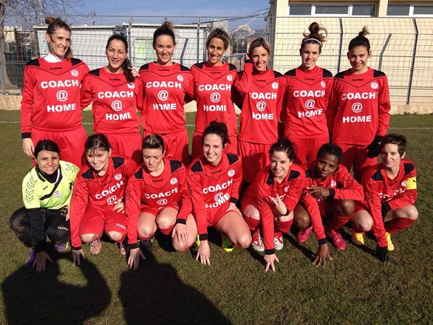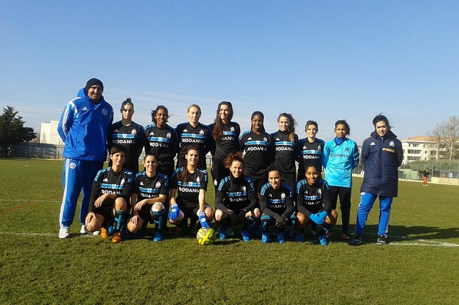Les Olympiennes ne renoncent pas L'équipe de division d'honneur de l'OM a tenu tête à un prétendant à la montée en D2 en déployant les efforts nécessaires pour revenir au score. Menées au score à l'heure de jeu à la suite d'un contre, les Olympiennes n'ont pas baissé la tête et sont revenues au score à 3 minutes de la fin du match : sur un centre de Béatrice Enyegue, Tania Renda, à l'entrée de la surface de réparation, adresse une frappe sèche à ras de terre et égalise. François Zmyslony a apprécié le comportement de son équipe dans un match joué dans un excellent état d'esprit. |