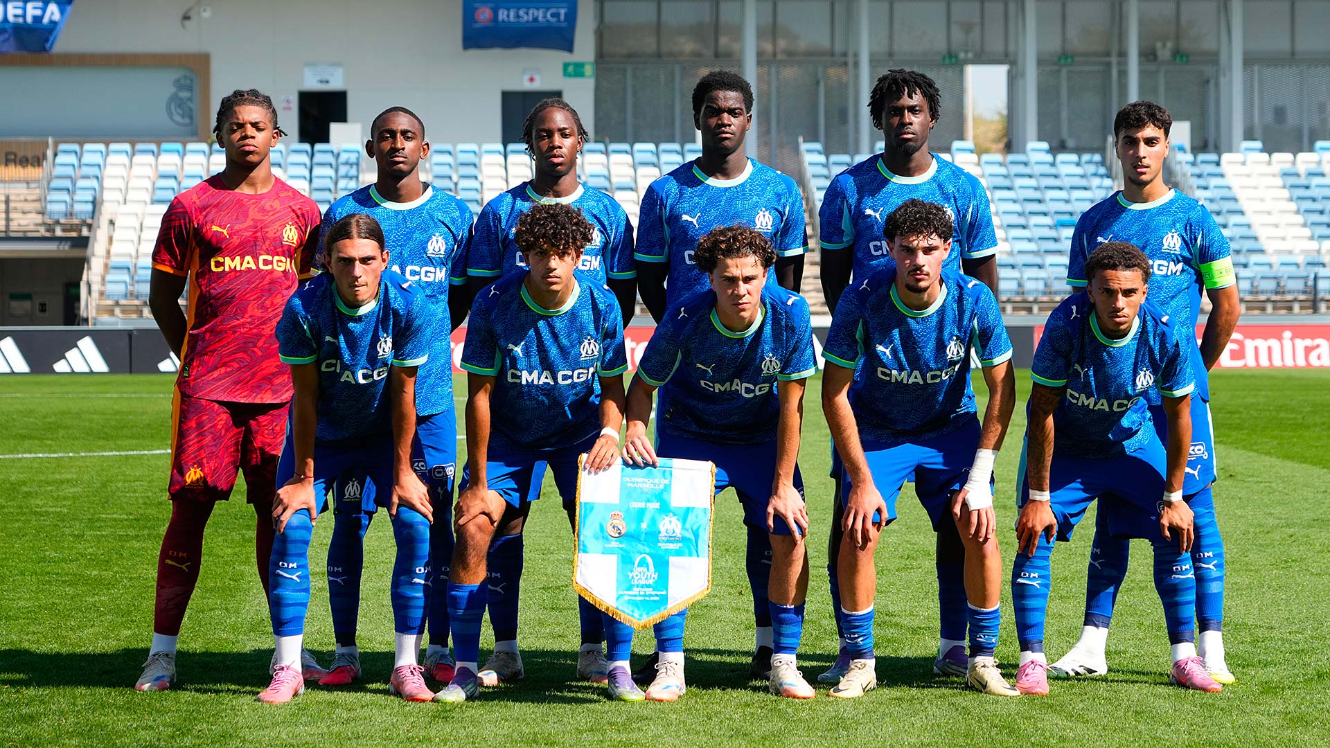 OM : Yassine Badaoui, Gianni Calisto (Said Remadnia 66'), Fode Camara, Pladi N'Zinga Pambani, Mathis Clement, Alexandre Issanga (Milan Leccese 56'), Yanis Sellami, Tadjidine Mmandi, Max Cordon (Kyle Magaud 89'), Kelyann Bezahaf, Antoine Valero (Azhar Ali 67') Entr : Lasaad Hasni Real Madrid : Javier Navarro Jimenez, Javi Bailon Alvarez (Melvin Ukpeigbe Eraze 62'), Ferran Seco Fons, Ariel Nkoghe Ncara, Victor Valdepenas, Adrian Perez Munoz (Daniel Yanez 62'), Diego Martinez Perez, Carlos Diez Pagon (Roberto Martin Uruel 72'), Izan Regueira Novoa, Raul Navascues, Alfonso Romero Sanz (Jaime Barroso 45') Entr : Julian Lopez |