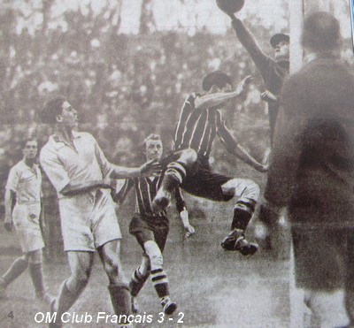 Et, quand le ballon allait et venait à proximité du but de l'O.M. c'était au tour d'Allé d'entrer souplement en action. |