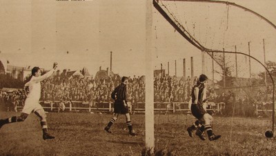 Ses partenaires donnèrent l'impression qu'ils voulaient accompagner le ballon jusque dans le but, et cela faisait bien l'affaire d'Allé, qui est un gardien d'une souplesse acrobatique et qui excelle dans les bons horizontaux, verticaux, latéraux sur le ballon. Allé n'est pas un gardien sobre, au coup d'œil sûr, à l'art de se placer impeccable. Il se montre surtout brillant dans le combat de près, et les assauts des Clubistes faisaient bien son jeu. Mercier marqua, dix-sept minutes après le repos, le premier but pour les Parisiens, d'un de ces shots vite déclenchés qui surprennent les défenseurs opposés. Quatre minutes avant la fin, Roels obtint, d'un shot de la pointe rapidement parti lui aussi, le second point pour le Club. |